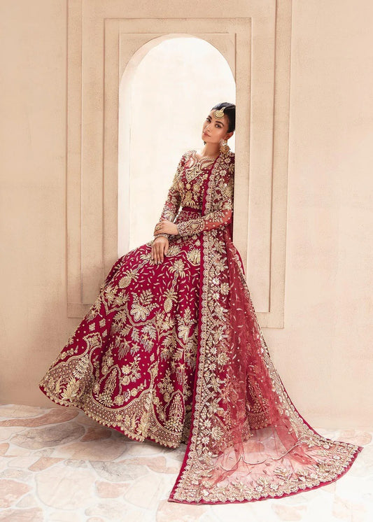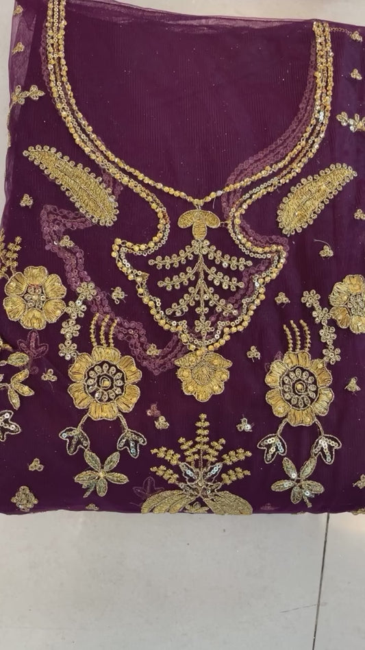Bridal Anarkali Gown in Maroon Color with net fabric