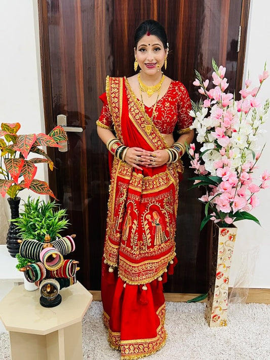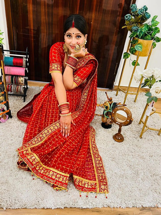 Pure Viscose Fabric Red Colour Ghatchola Saree