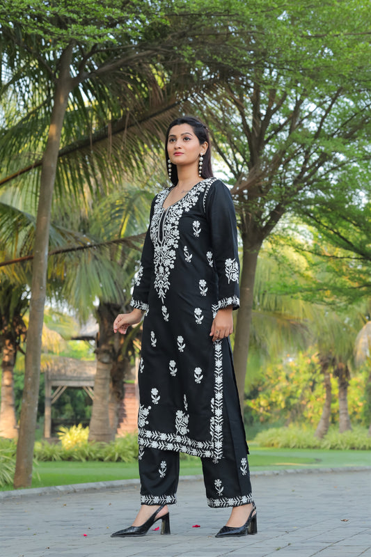 Black Color Beautiful Daily Wear And Summer Wear Kurti With Plazo in Rayon Fabric