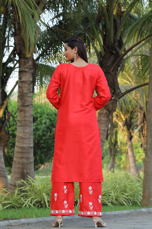 Red Color Beautiful Daily Wear And Summer Wear Kurti With Plazo in Rayon Fabric