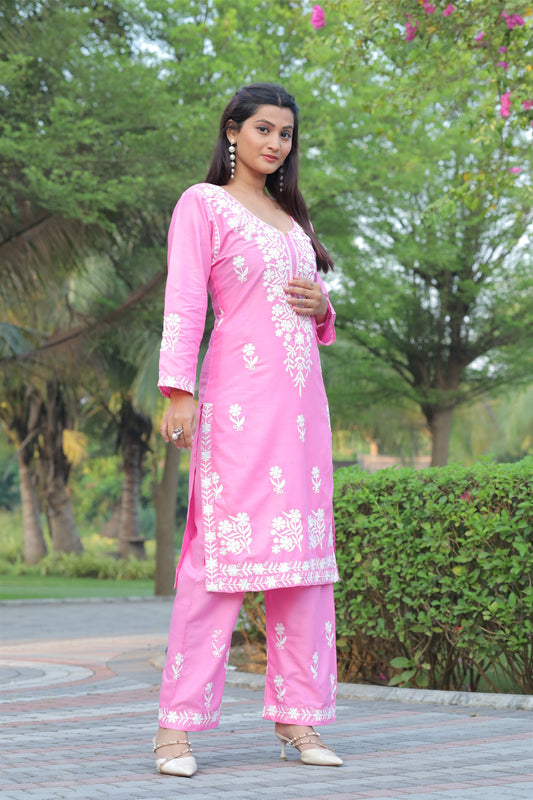 Pink Color Beautiful Daily Wear And Summer Wear Kurti With Plazo in Rayon Fabric