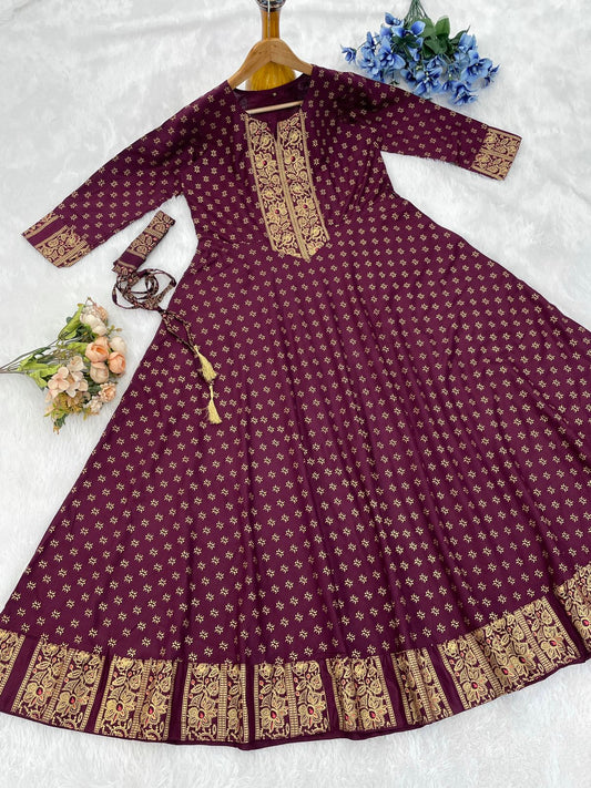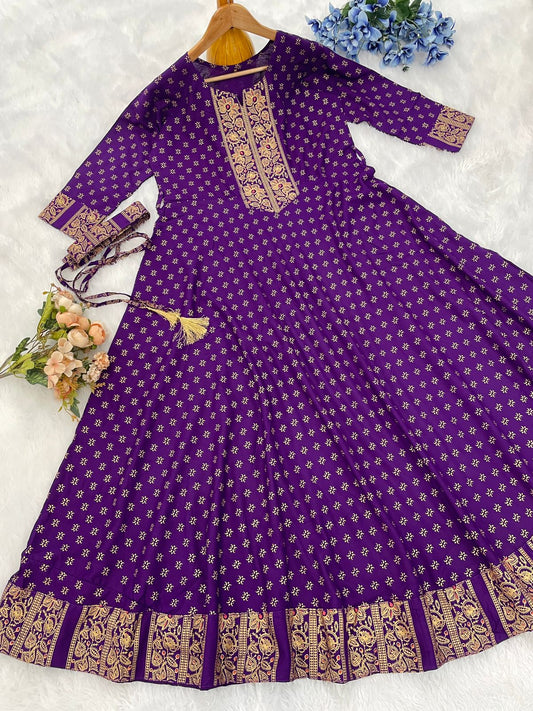 Purple Color Beautiful Anarakli Gown for office use or small function