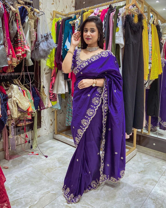 Beautiful blue color vichitra silk fabric saree