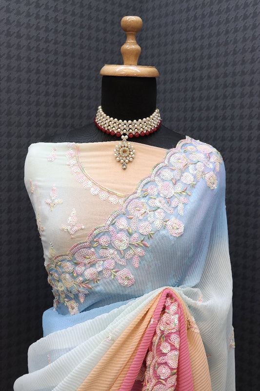 Buy Now Beautiful Sky Blue Saree for upcoming festival in georgette fabric