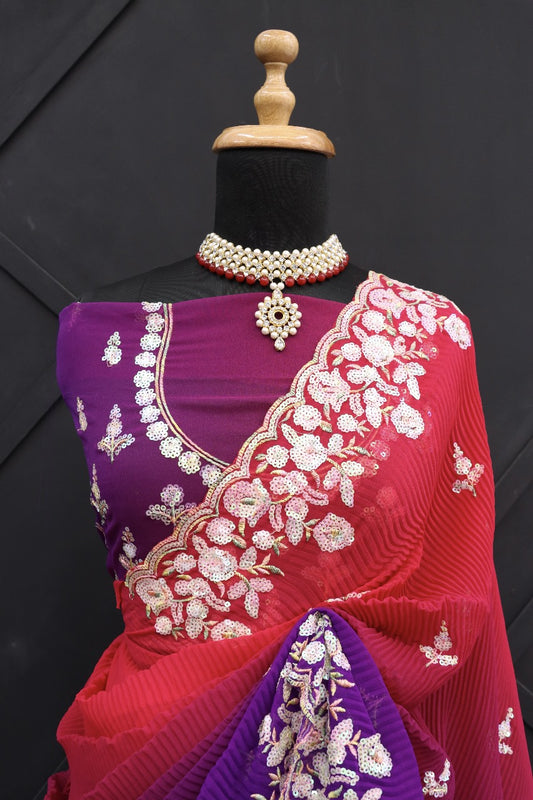 Beautiful Faux Georgette With Crush Pattern Saree in Red Purple Color