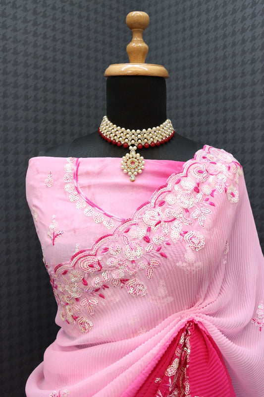 Beautiful Faux Georgette With Crush Pattern Saree in Pink Red