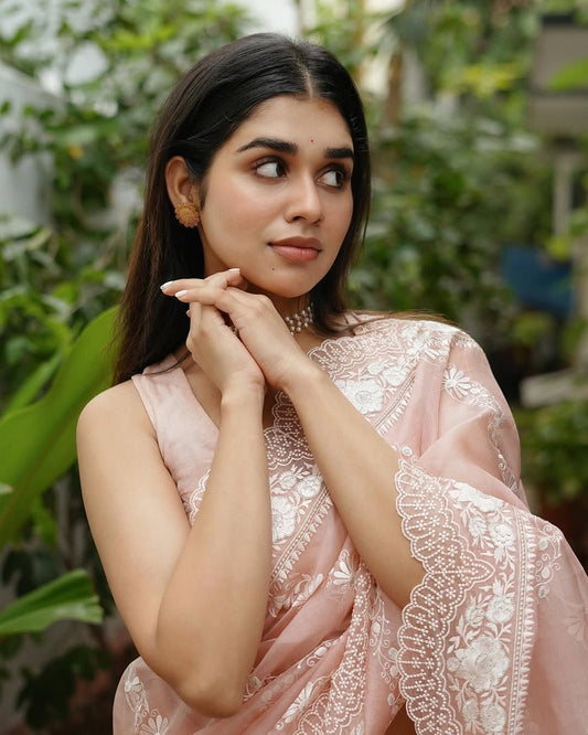 Beautiful Partywear Light Color Saree in Organza Fabric