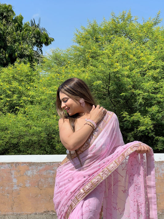 Pink Shaded Color Beautiful Georgette Fabric Saree Buy It now.
