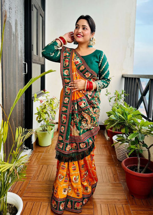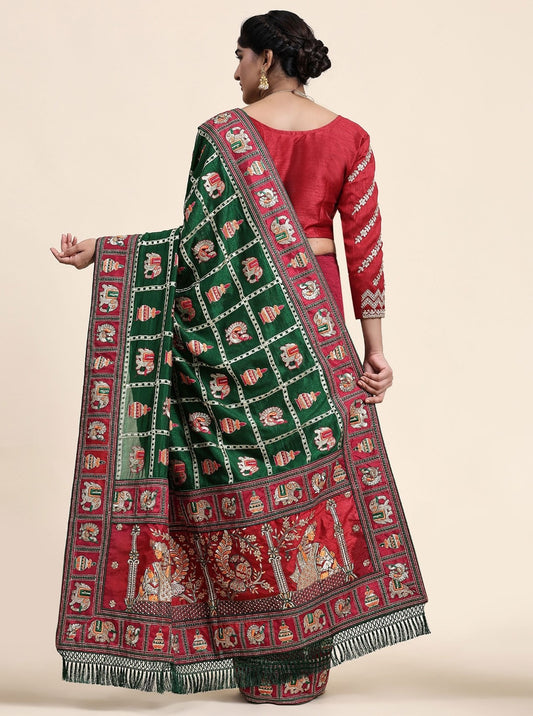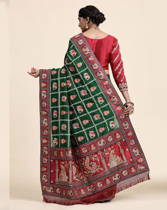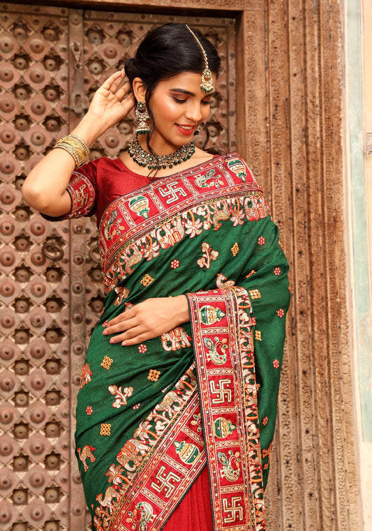 Green Red Color Panetar Patola Saubhagyavati Bhava Kalash Wedding & Special Occasion Saree
