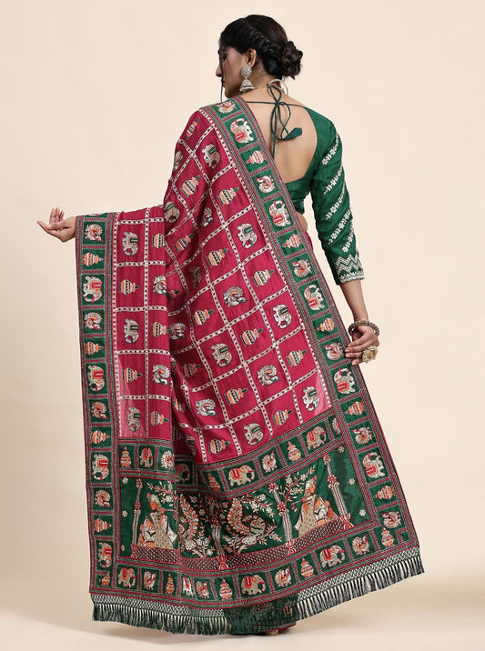 Red Green Color Beautiful Panetar Saree in Vichitra Silk