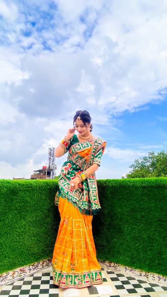 Mustards Yellow Red Color Panetar Patola Saubhagyavati Bhava Kalash Wedding & Special Occasion Saree