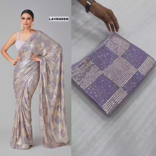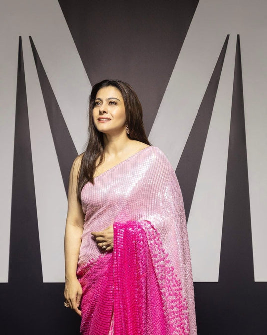 Launching Bollywood Kajol Devgan Blockbuster Sequins Saree in Georgette Fabric