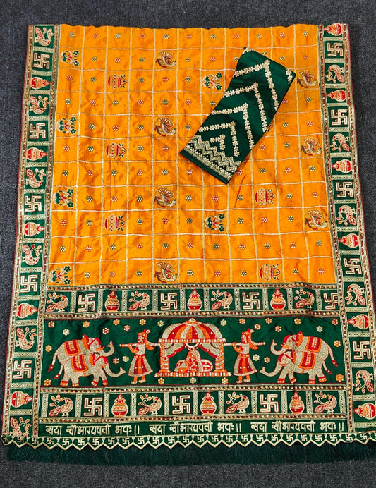 Yellow Green Color Panetar Patola Saubhagyavati Bhava Kalash Wedding & Special Occasion Saree