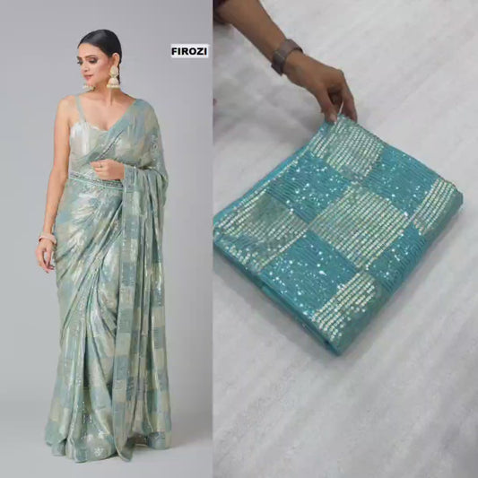 Sky Blue Color Beautiful Partywear Saree In Georgette Fabric Buy It now