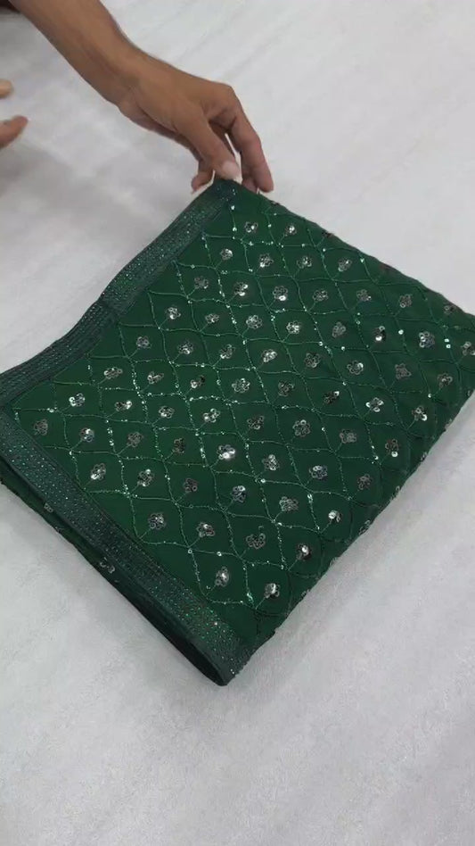 Heavy Partywear Saree In Georgette Fabric in Color green