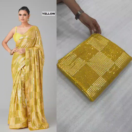 Yellow Color Beautiful Partywear Saree In Georgette Fabric Buy It now