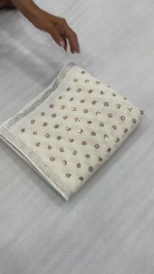 Heavy Partywear Saree In Georgette Fabric in Color White