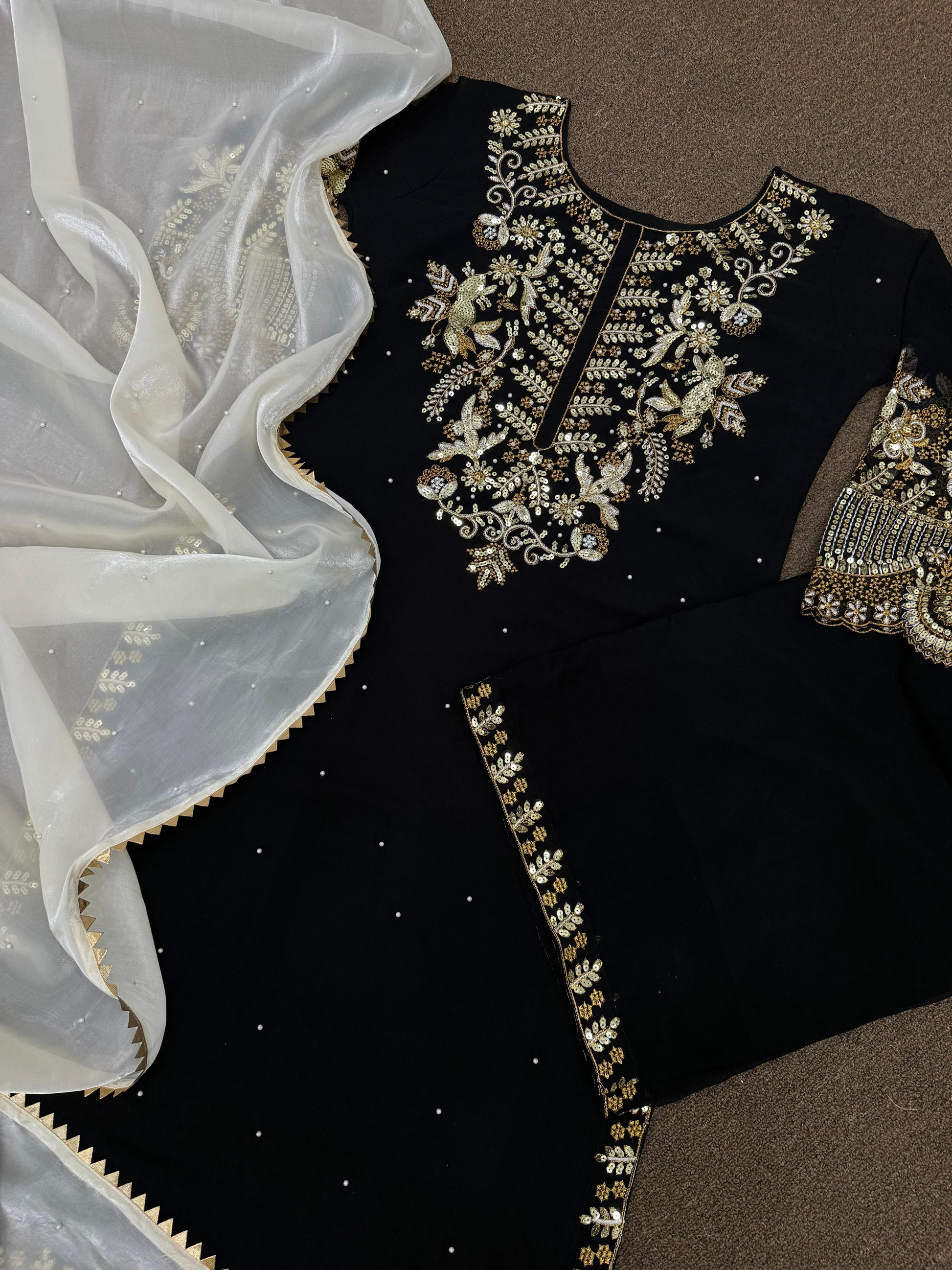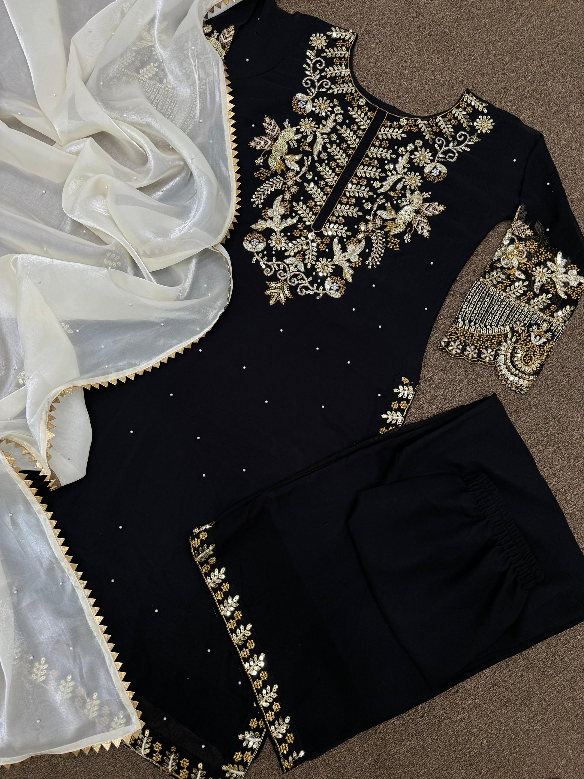 ➡️Work :- Attractive 5 Mm Embroidery Sequence Work With Rivet Moti Work. (Only Front)