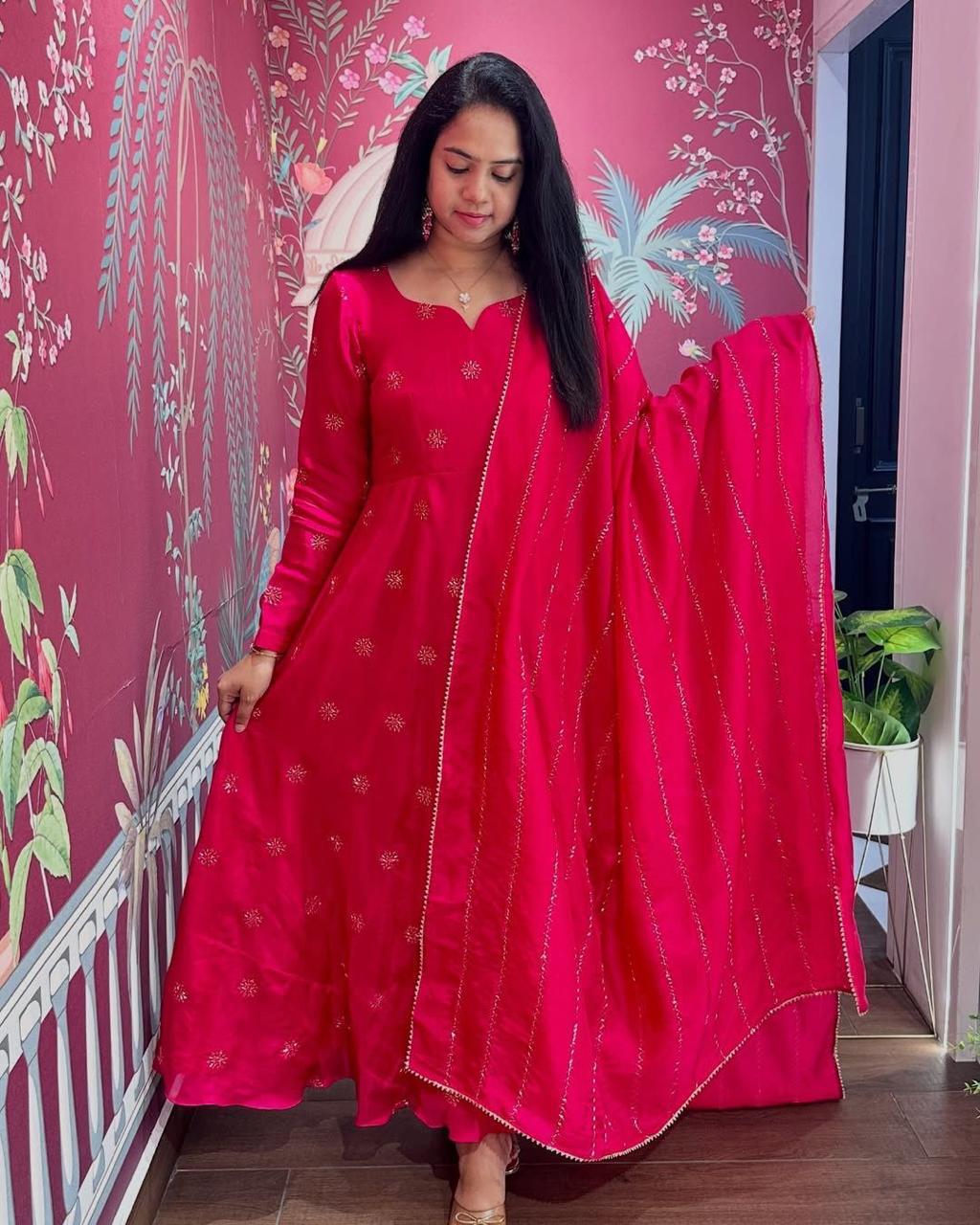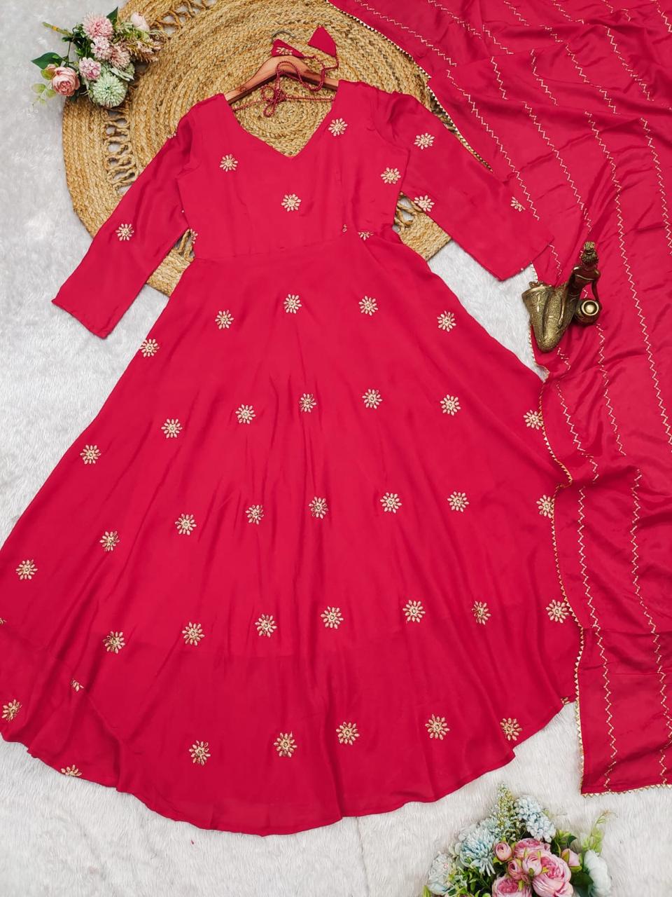 Beautiful Anarkali Gown with dupatta IN Chinon Fabric