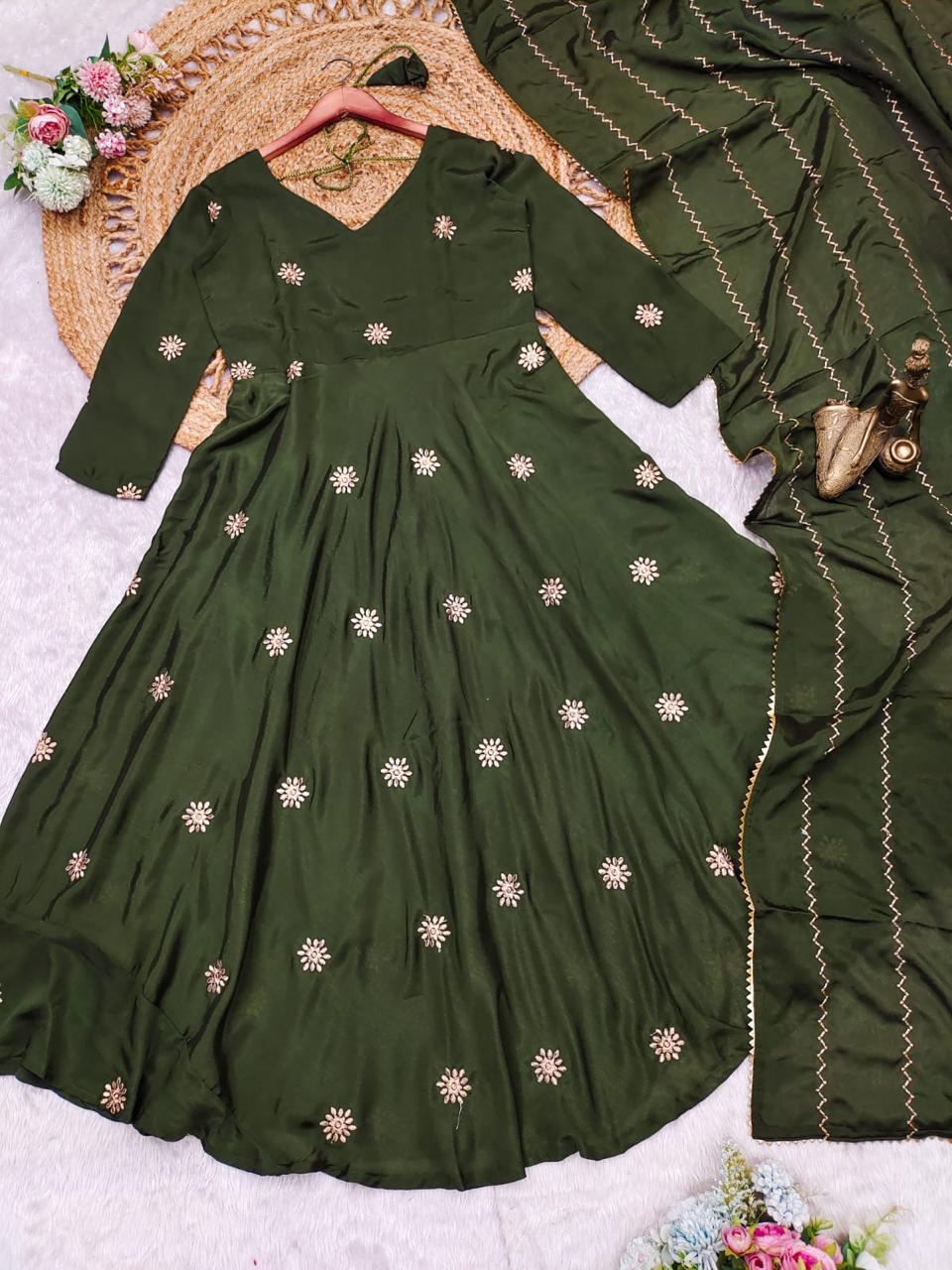 Beautiful Anarkali Gown with dupatta IN Chinon Fabric
