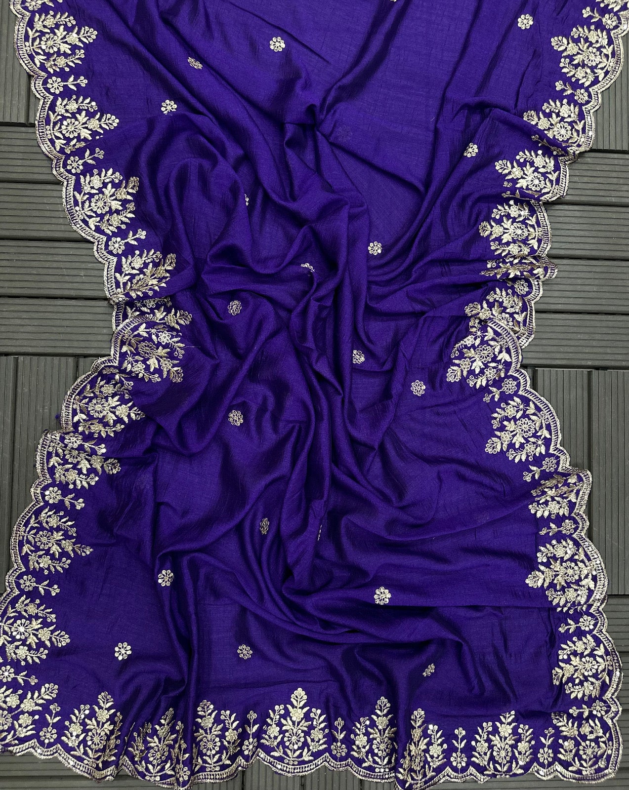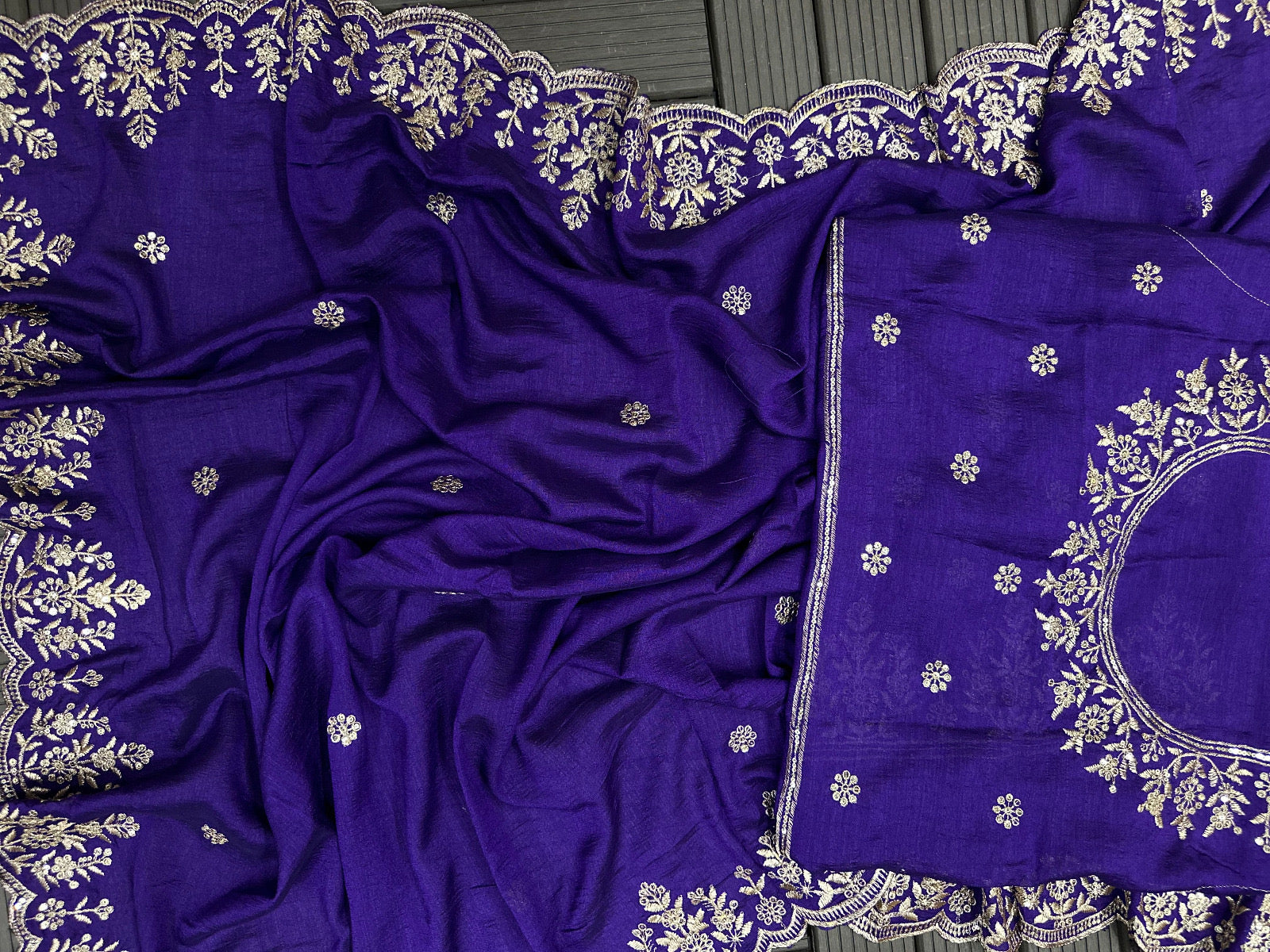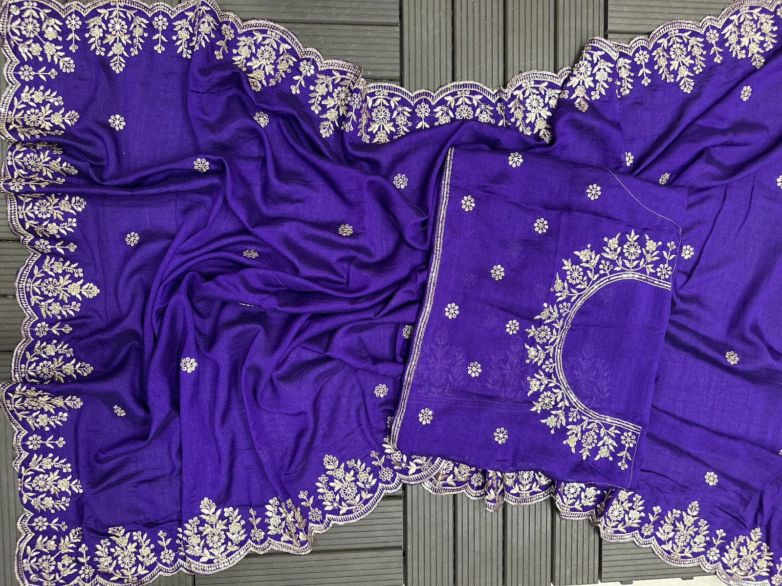 Saree Work : Heavy Embroidery Thread Zari & Sequins Work