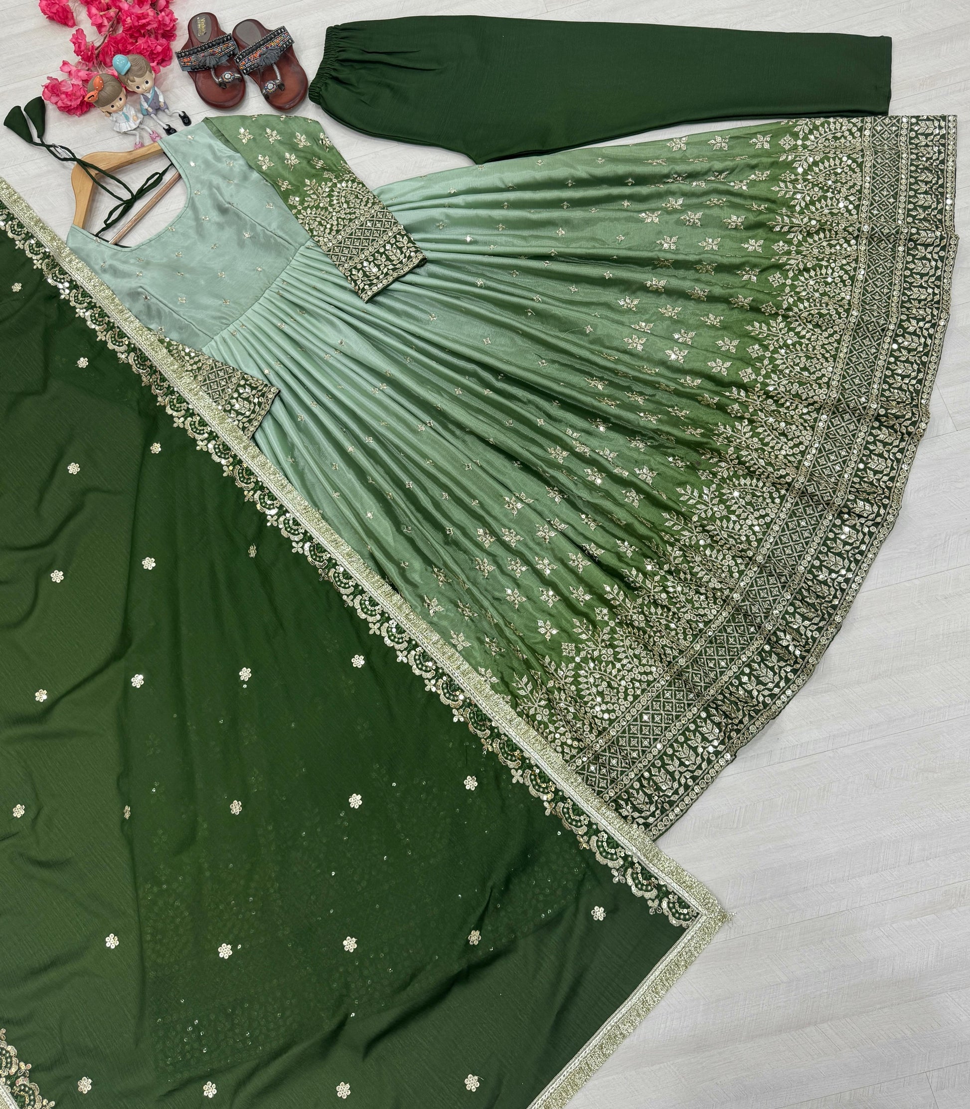Beautiful Designer Green Color Partywear Dress in Chinon Fabric