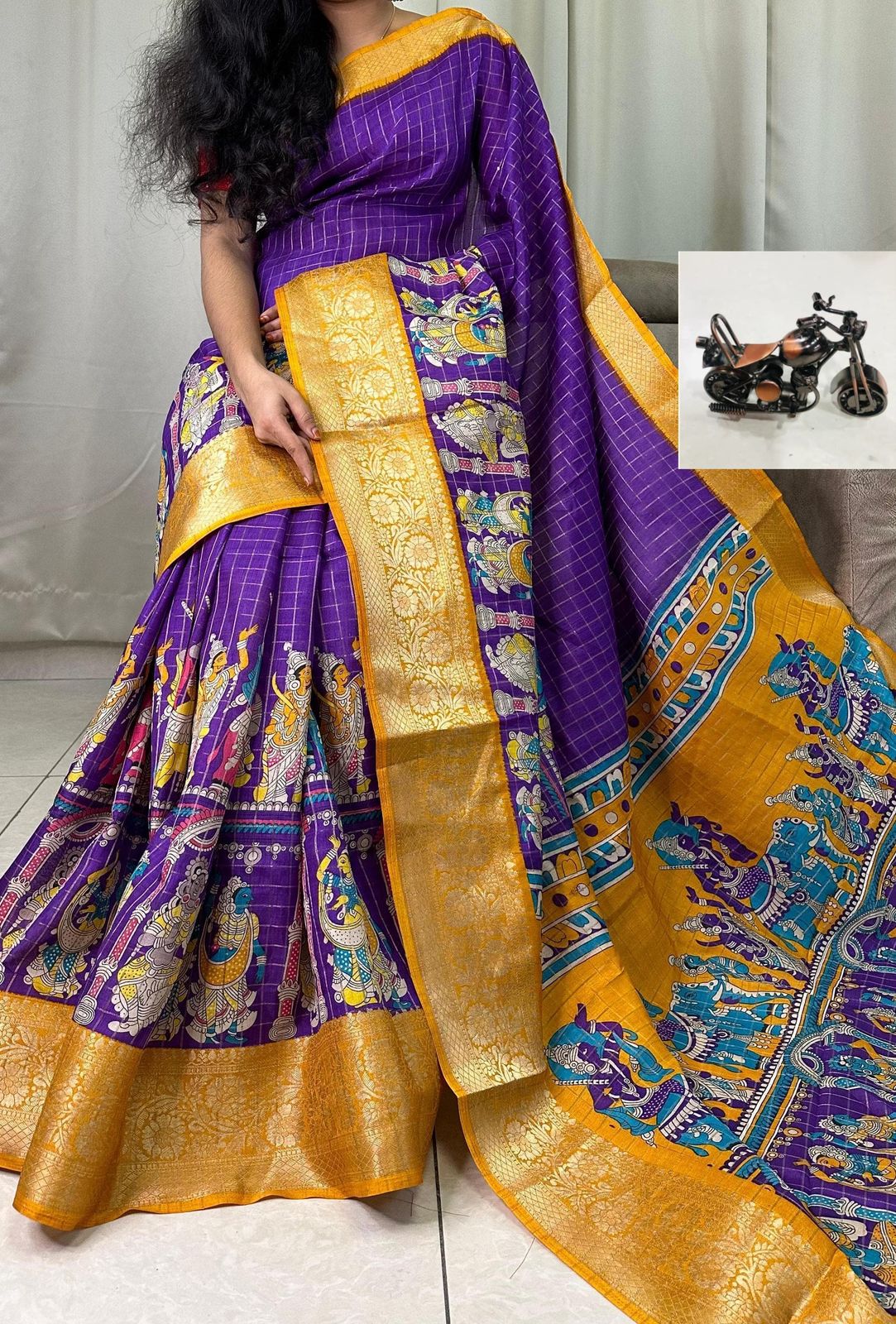 Rich Kalamkari Pallu With Contrast Print Blouse