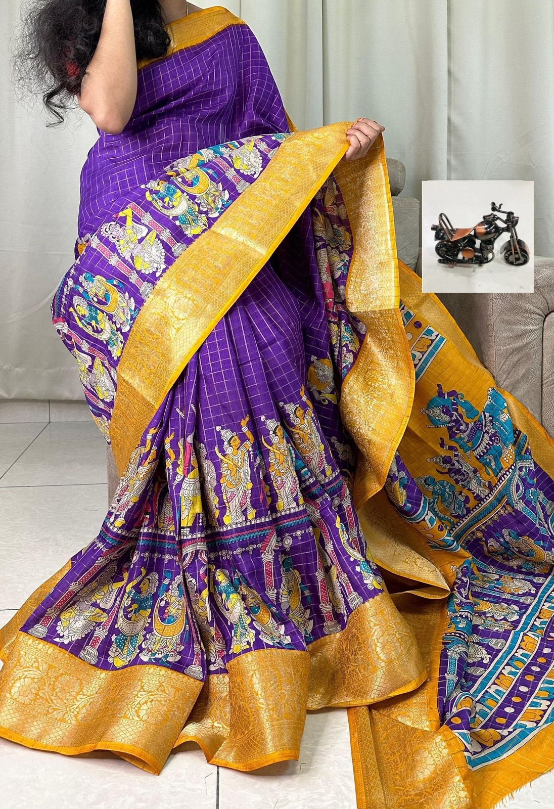 Beautiful Mangalagiri Dola Sarees With Print Checks