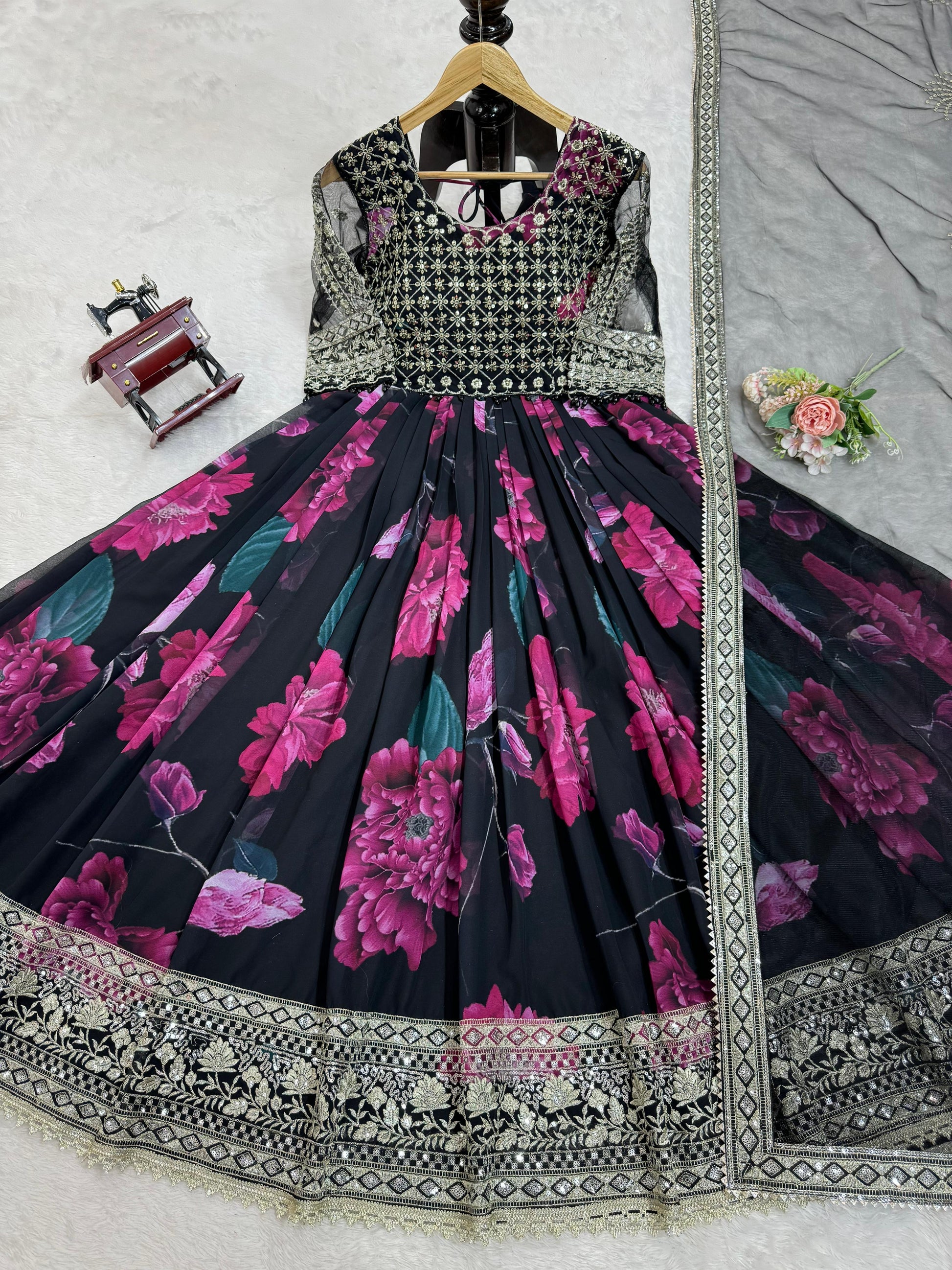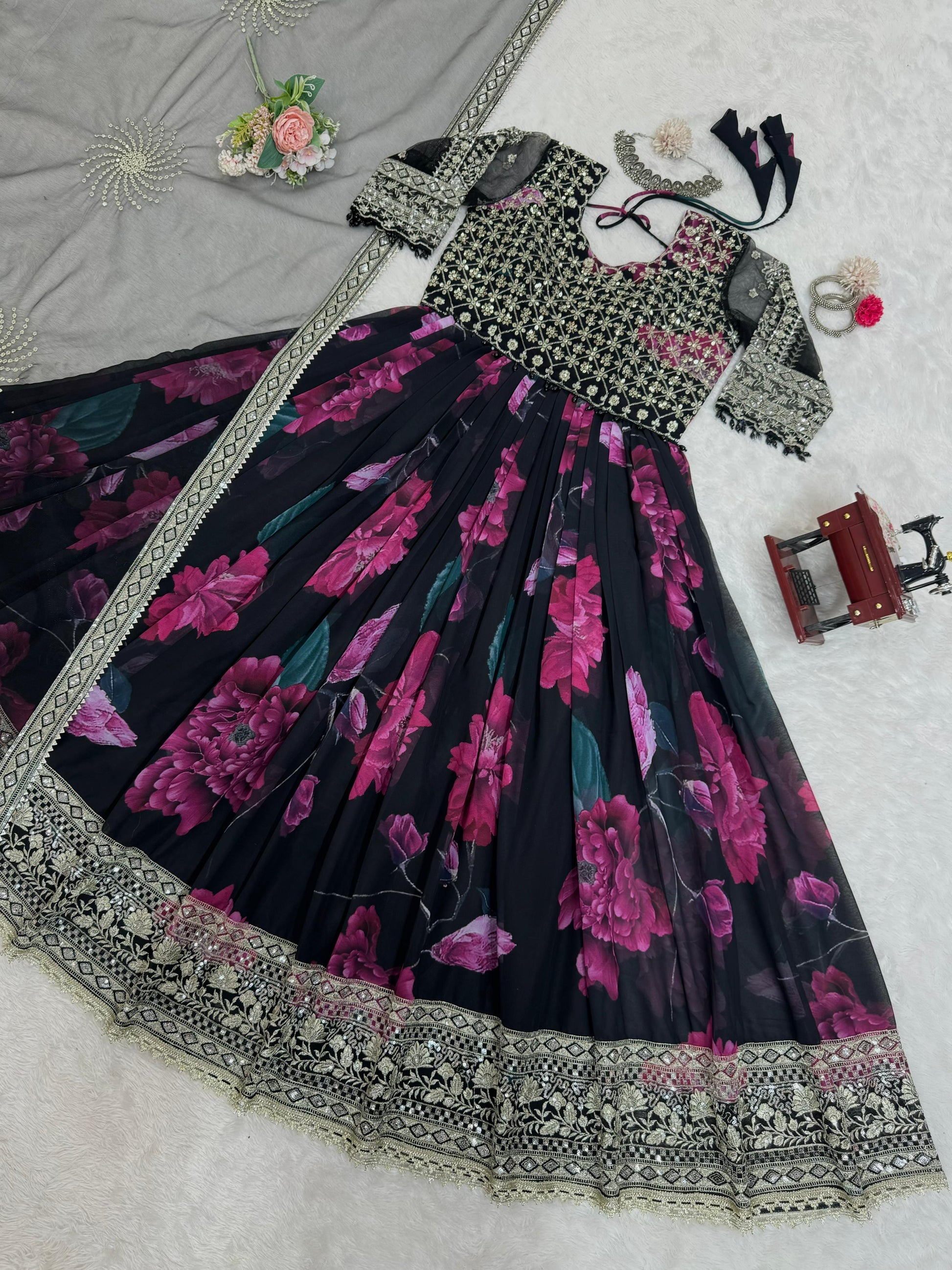 Beautiful Partywear Gown in Black Color in Georgette Fabric