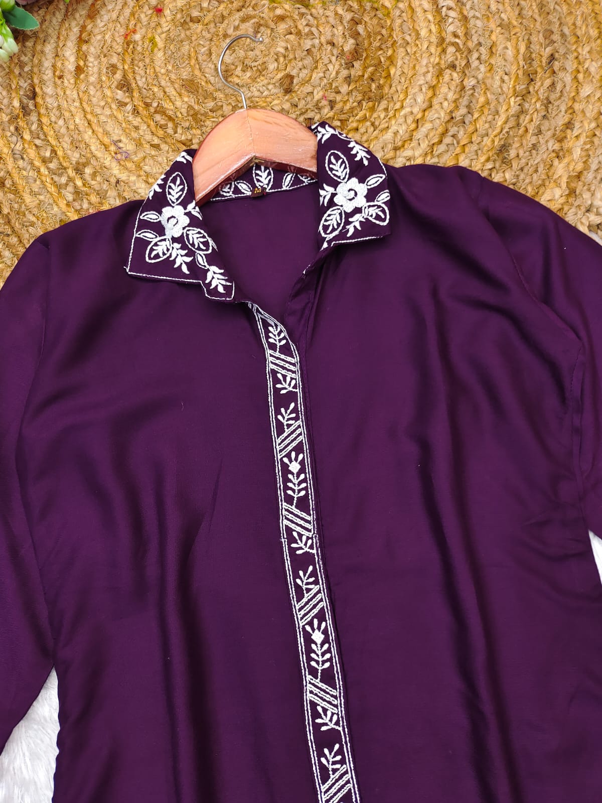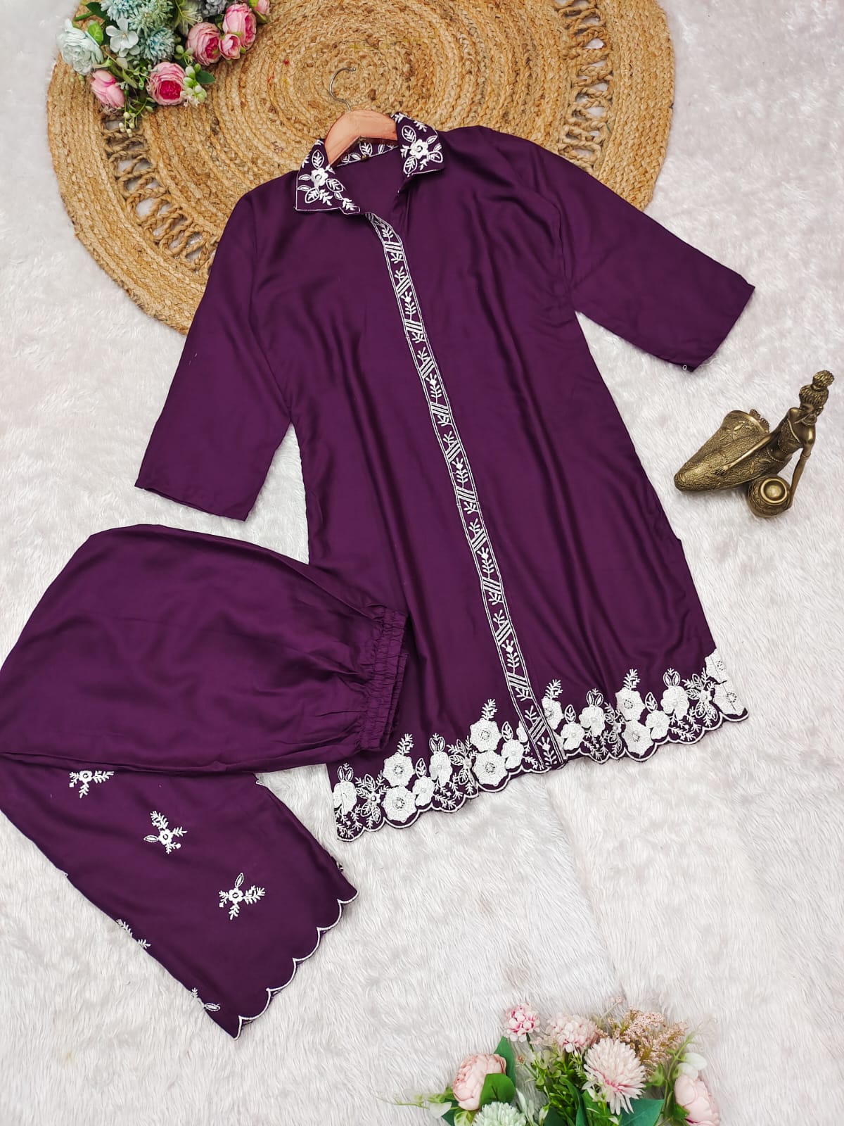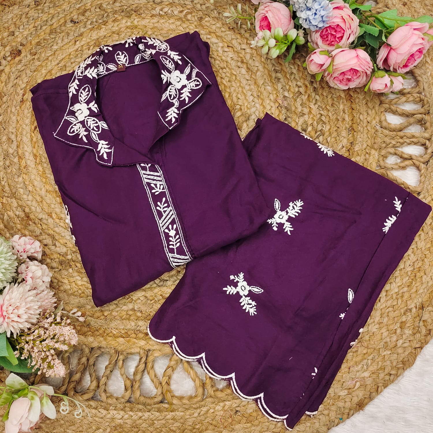 Beautiful Summer Wear Rayon Co-ord set in purple color