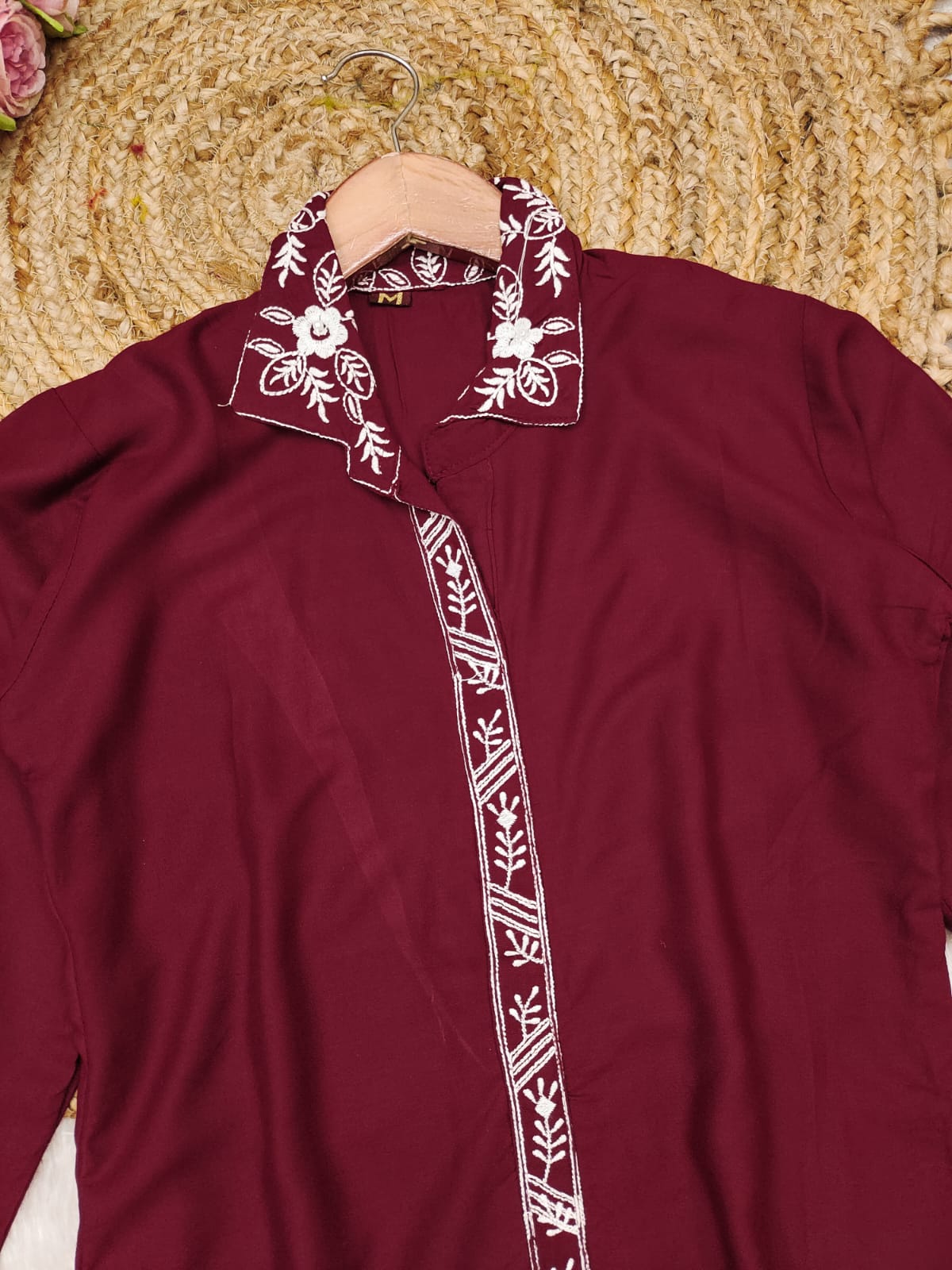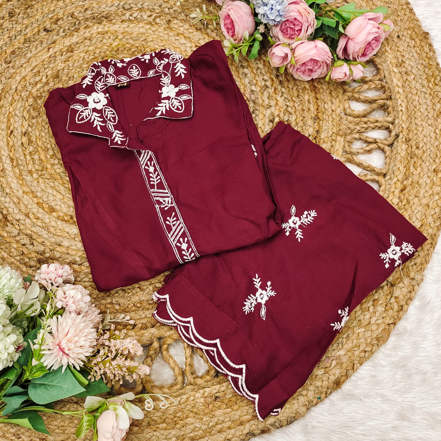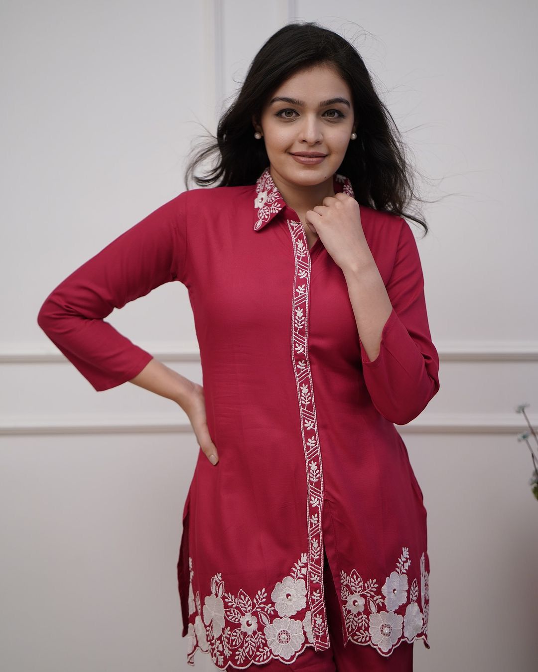 Beautiful Summer Wear Rayon Co-ord set in Red color