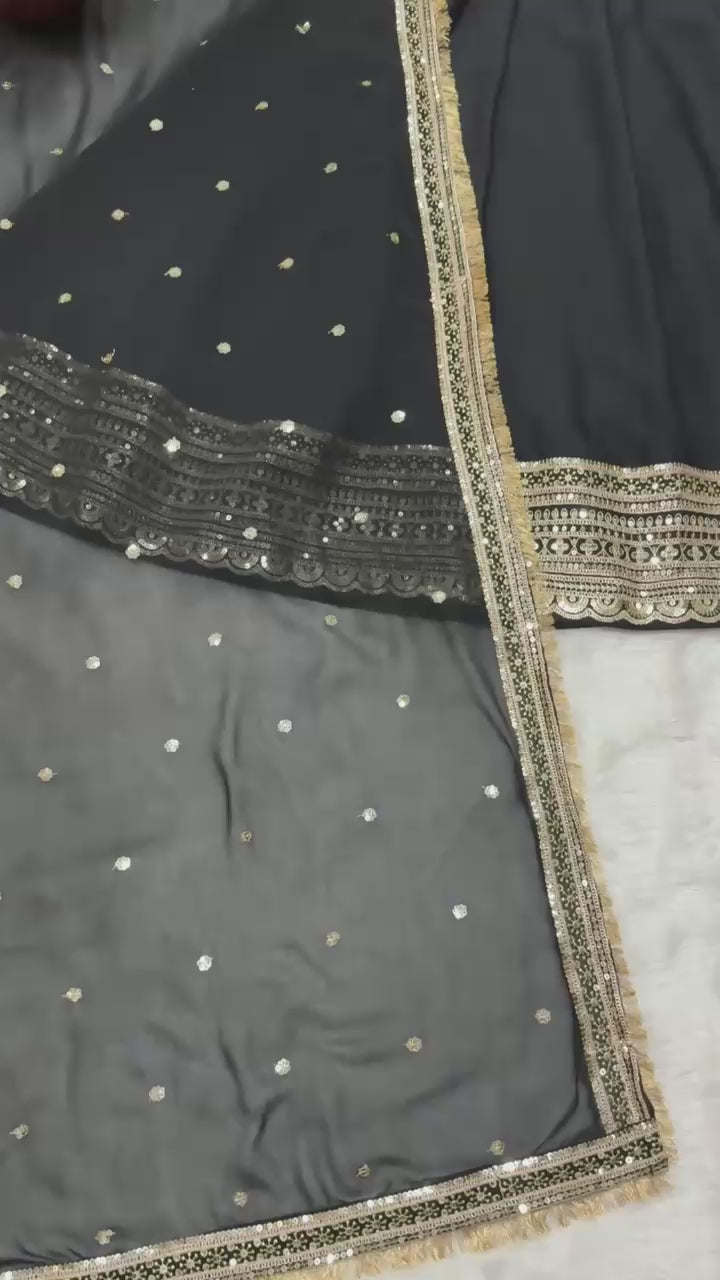 Top Fabric :- ~ Rayon Cotton With Heavy 3/5mm Sequins & Zari Thread Embroidered Work