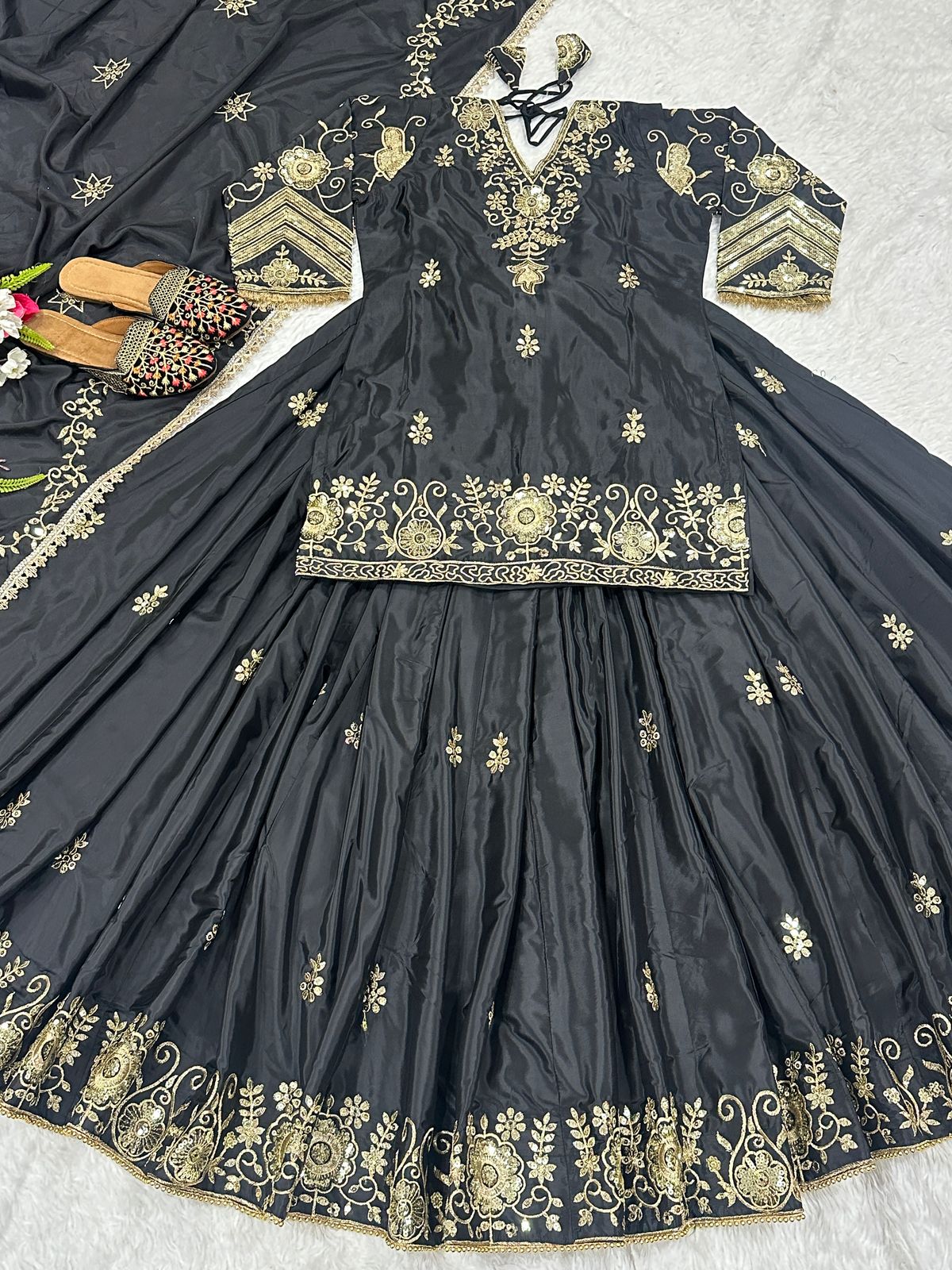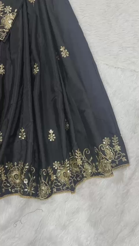 Black Color Beautiful Silk Dress in Top + lehenga with dupatta set