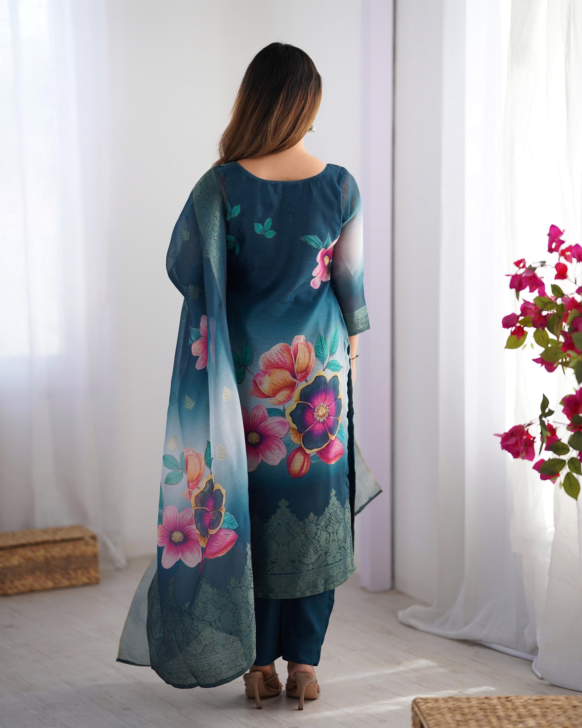 Blue Color Beautiful Chanderi Silk FAbric Dress