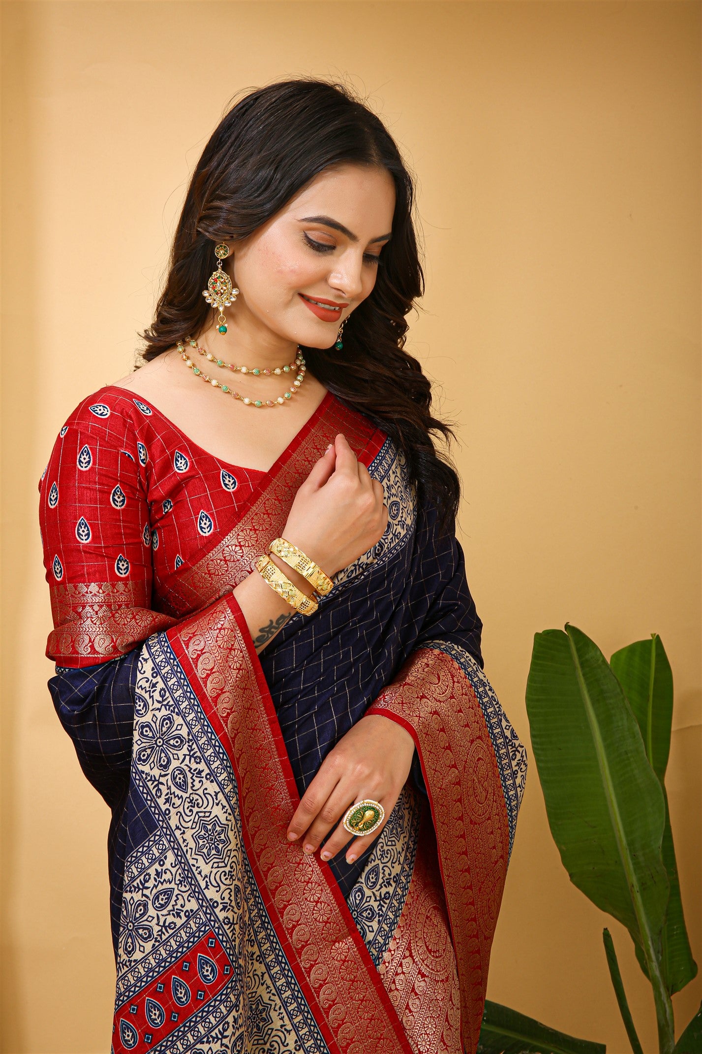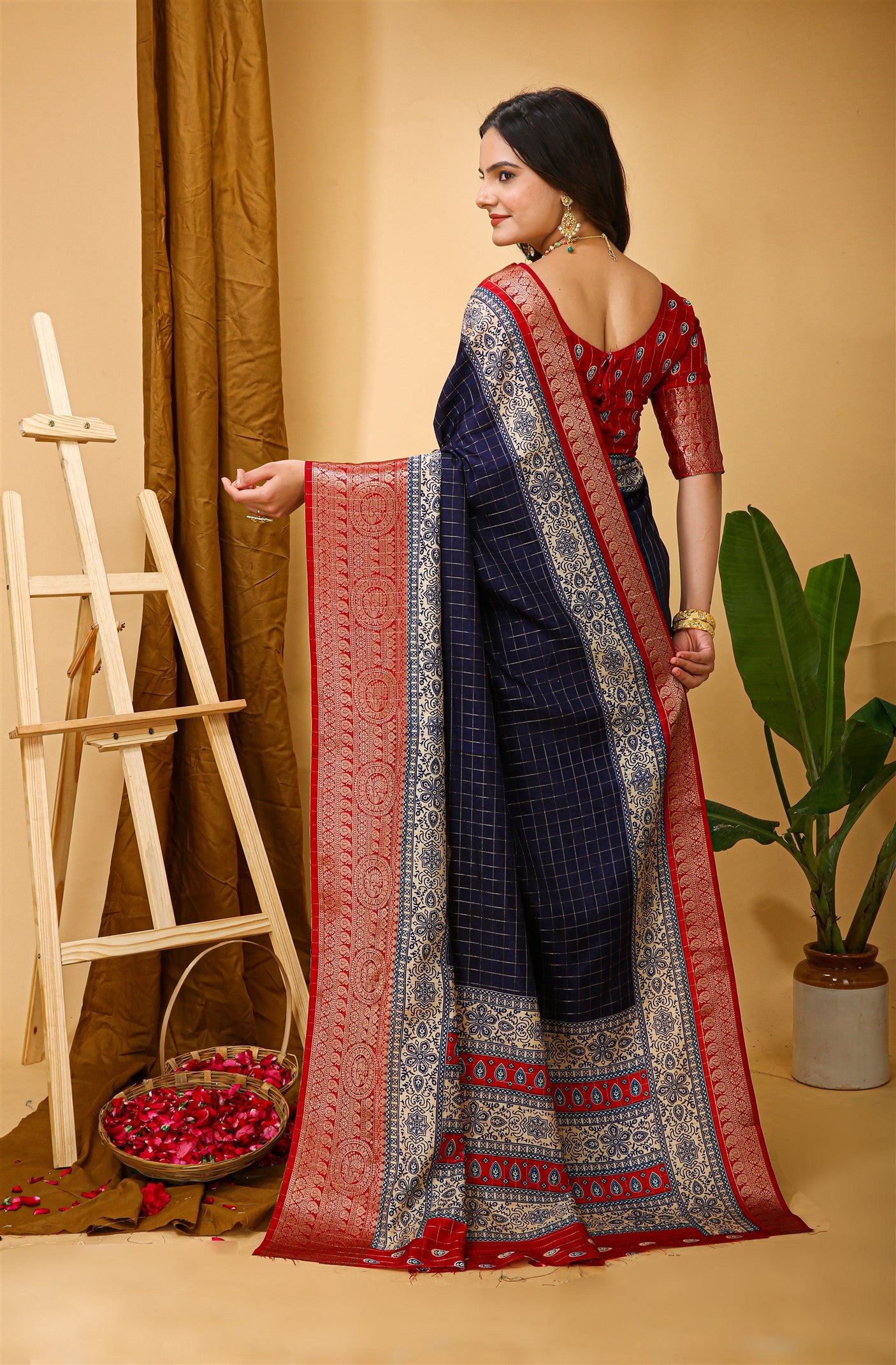 Fabric-Saree- soft Dola cotton silk fabric .(6.30m with print blouse)
