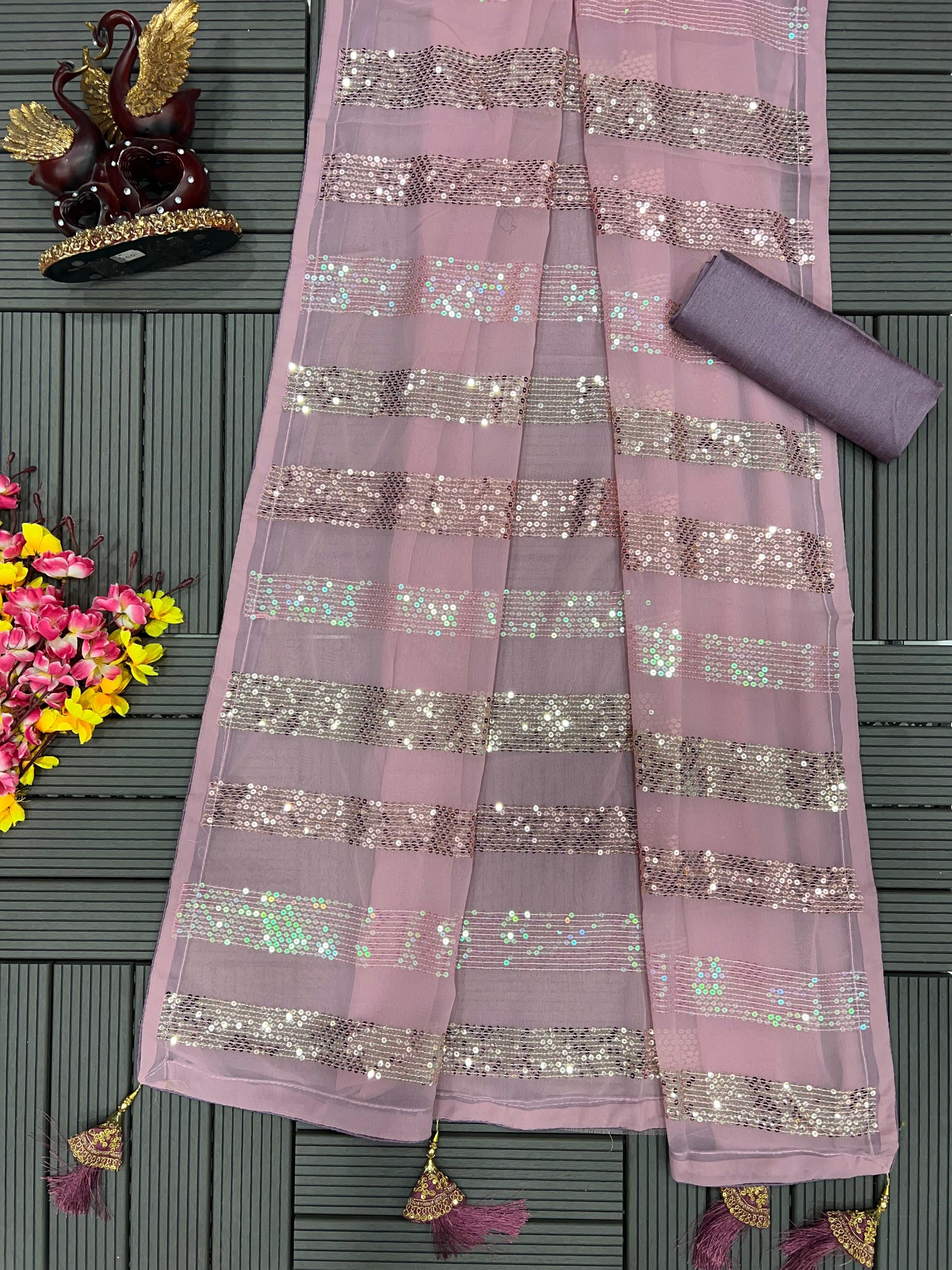 Buy Now Beautiful Georgette Fabric Partywear Saree In Light Pink Color