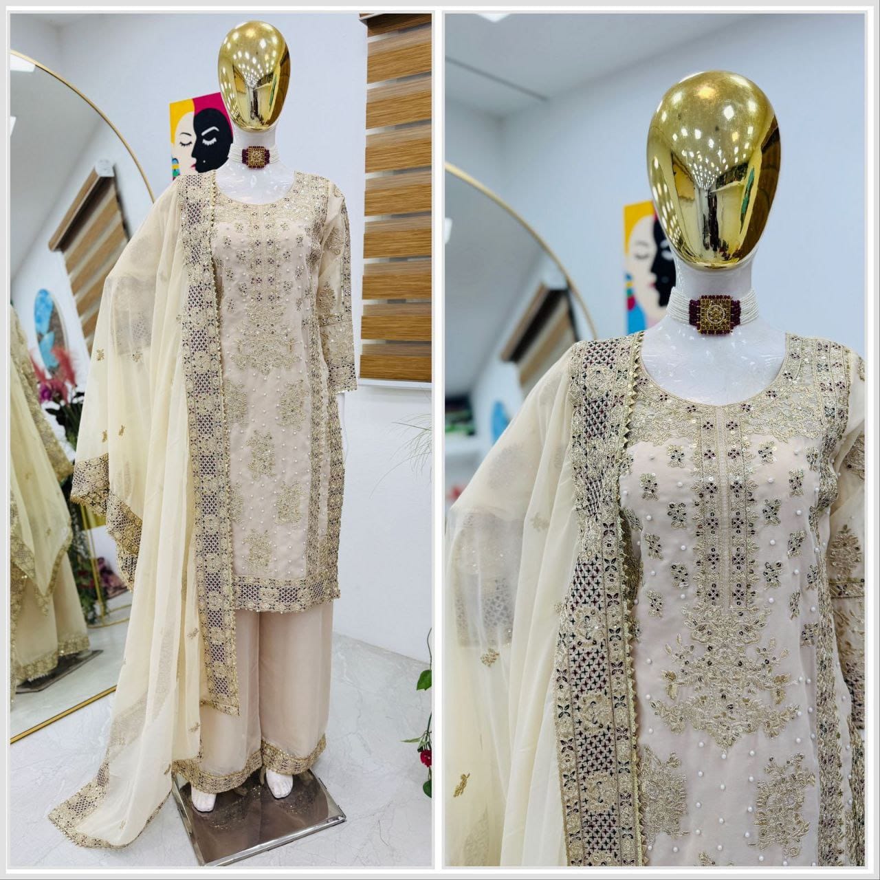 Cream Color Beautiful Partywear Dress in Georgette fabric