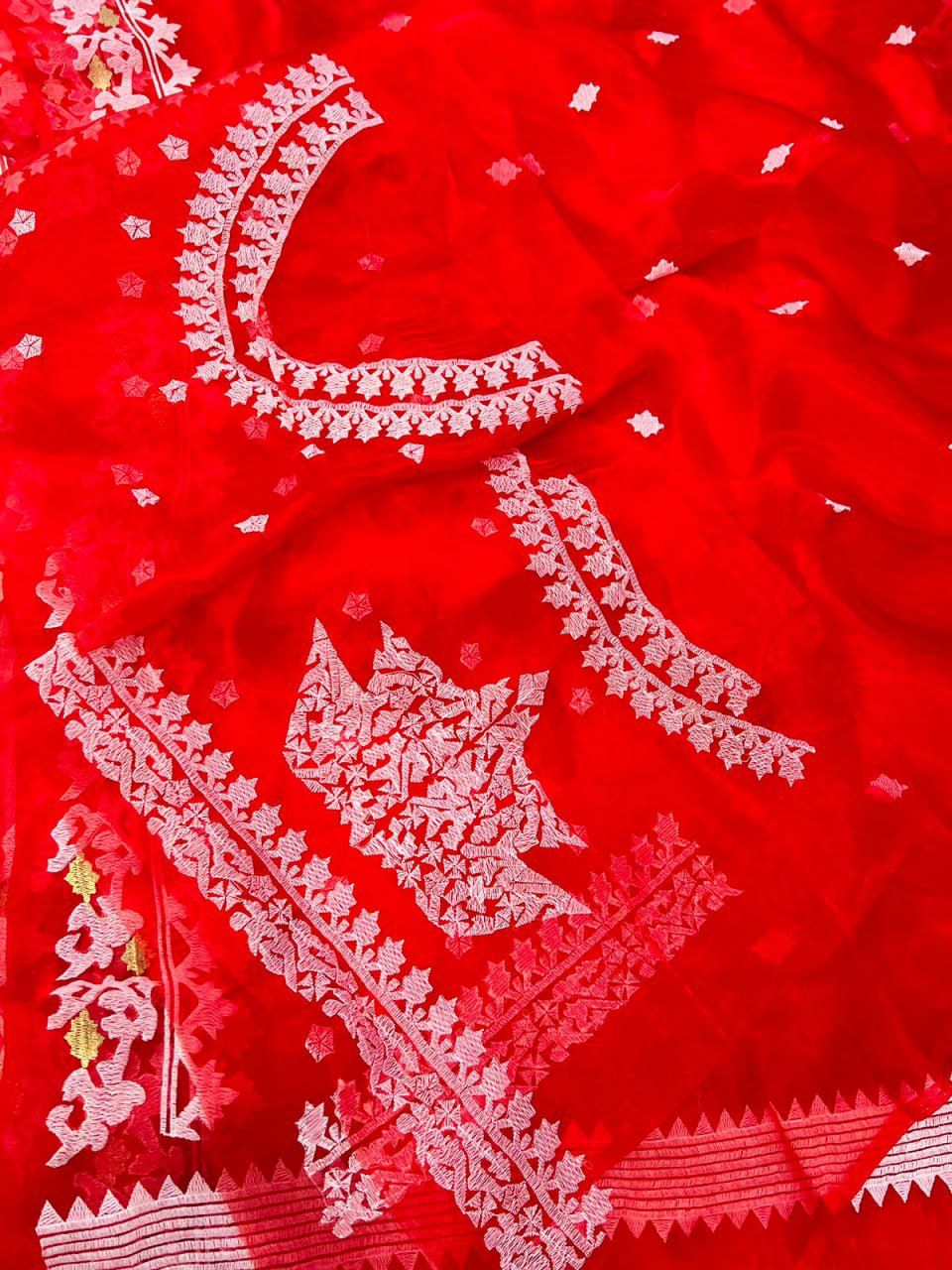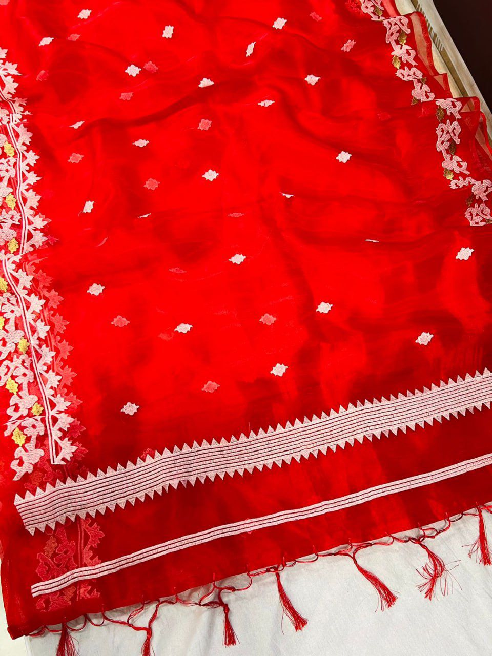 Demanding Organza Fabric Partywear Heavy Worked Saree