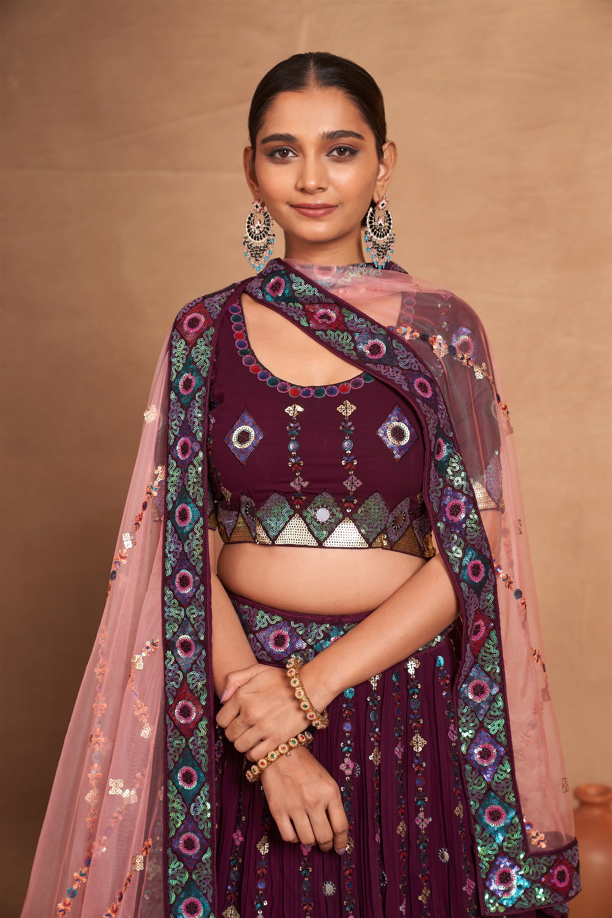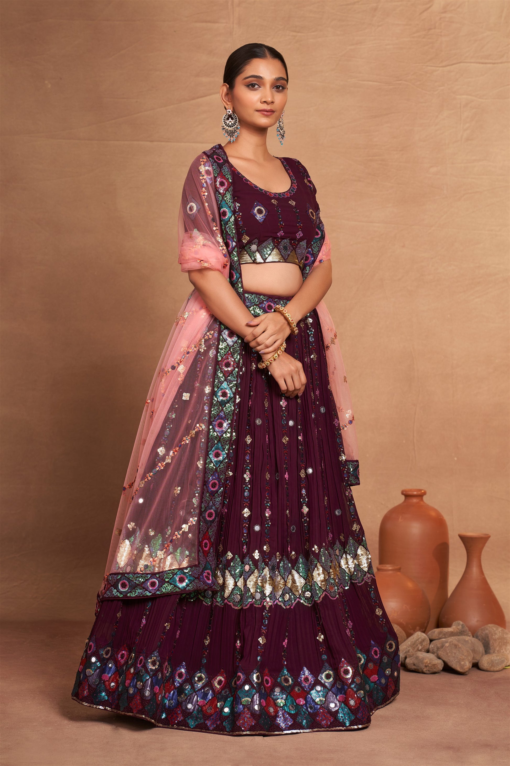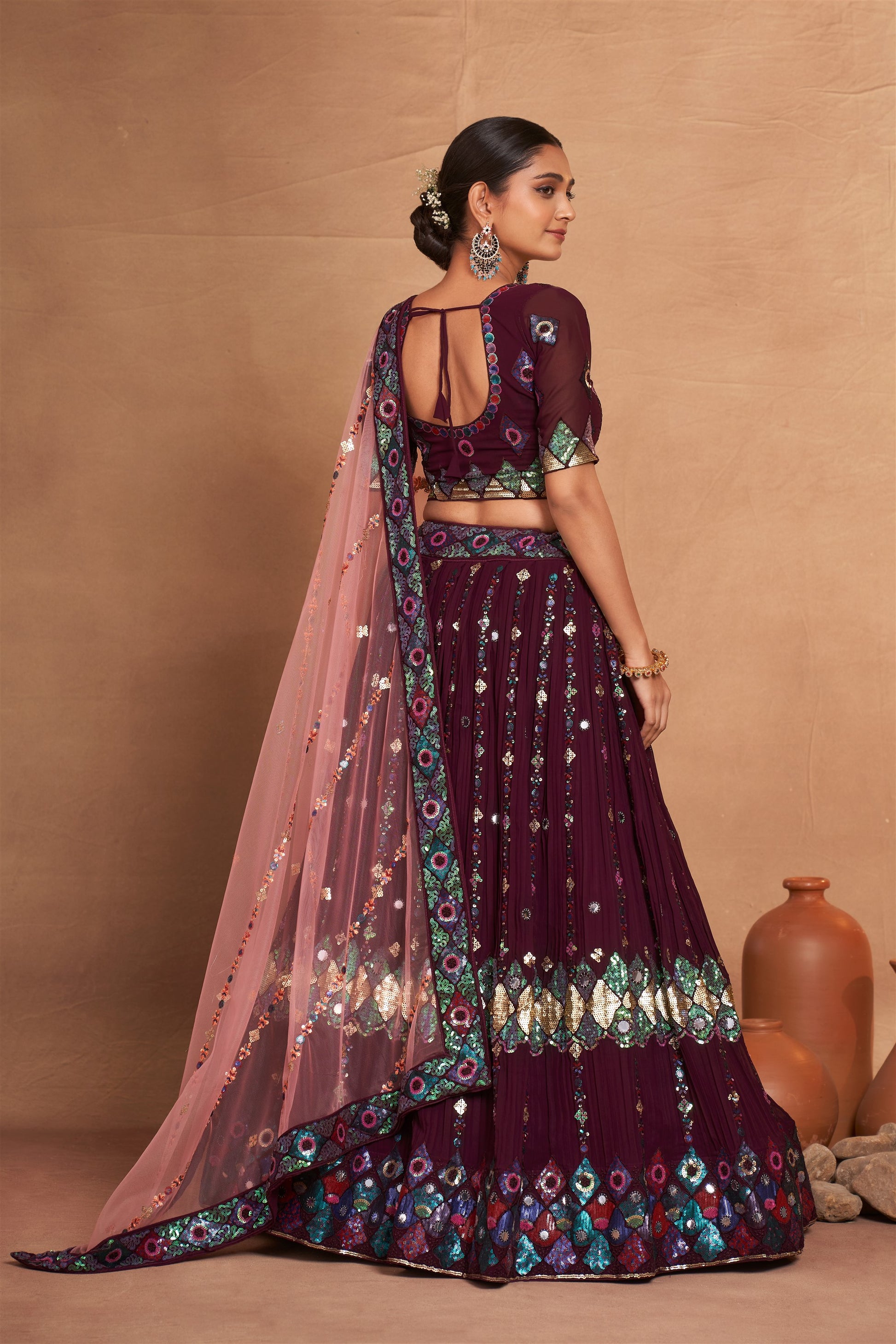 Designer Wedding Partywear Lehenga Choli in Georgette Fabric in maroon color