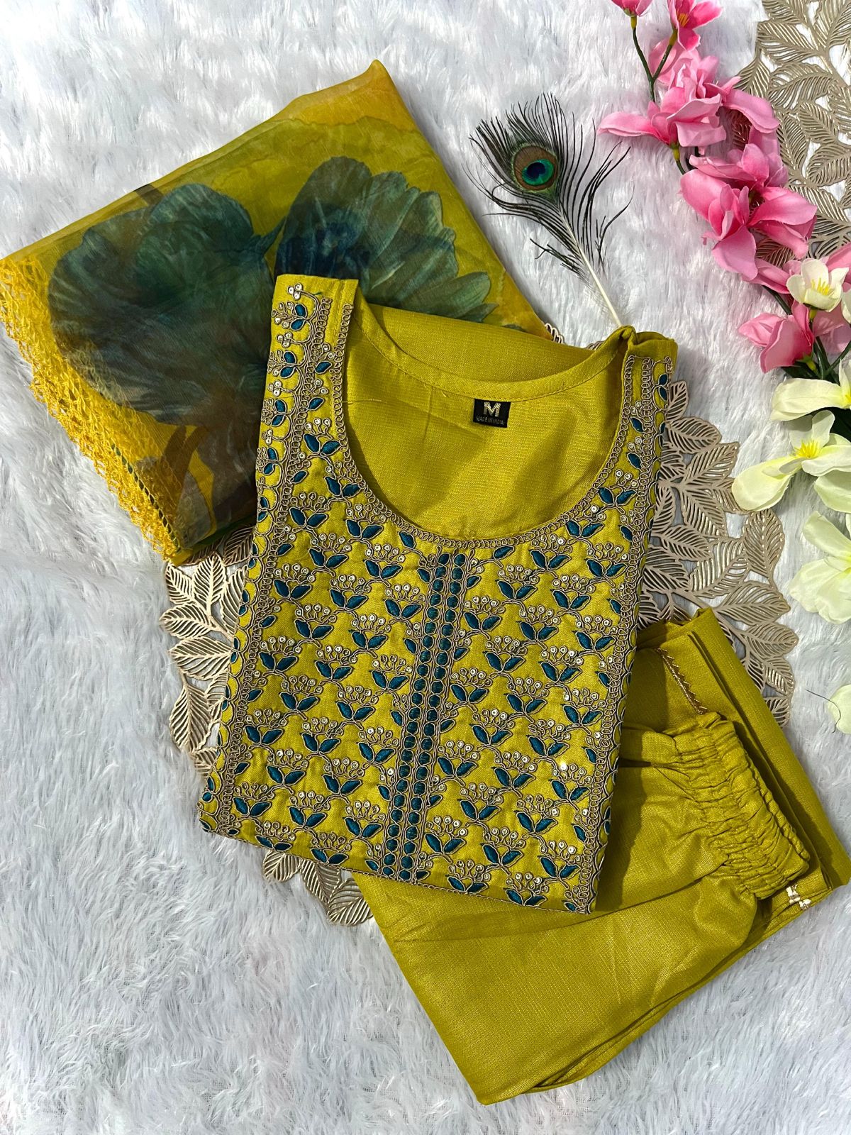 Designers Kurti Pent Dupatta Set for summer wear in light yellow color