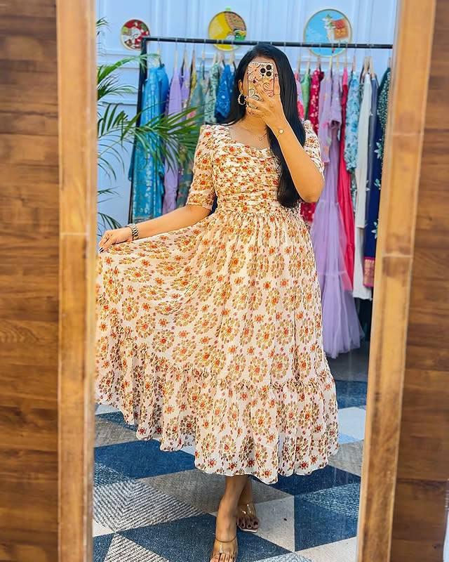 Embark On Summer In Style With Our Latest Addition: The Floral Georgette Maxi! Featuring An Design And Delightful Fabric Sprinkled With Beautiful Flowers, It’s A Must-Have For The Season.