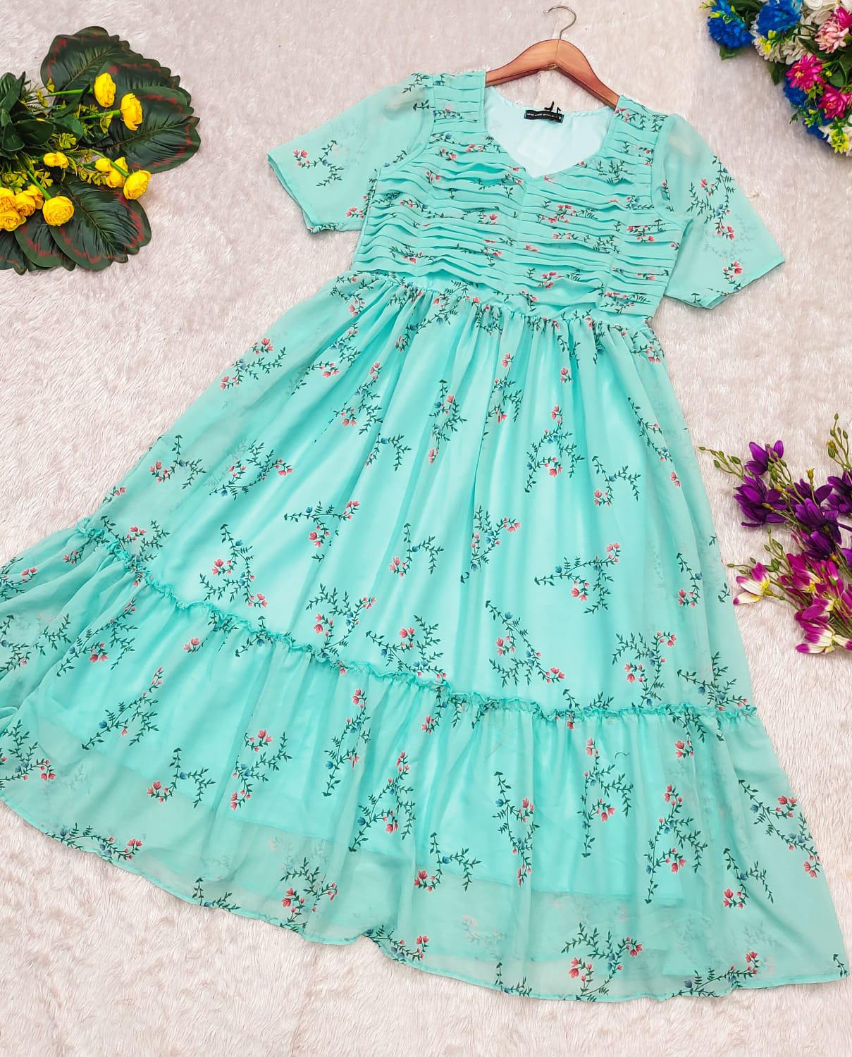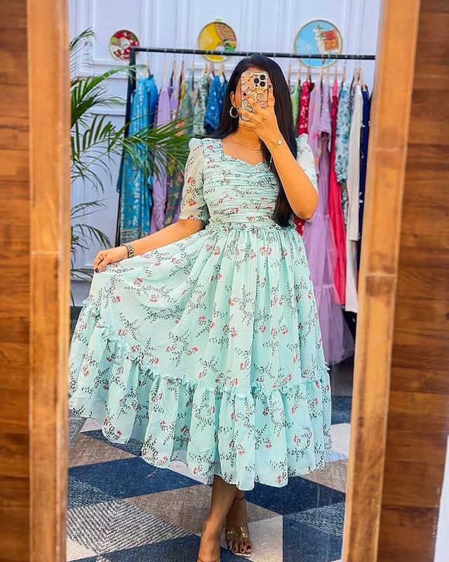 Embark On Summer In Style With Our Latest Addition: The Floral Georgette Maxi! Featuring An Design And Delightful Fabric Sprinkled With Beautiful Flowers, It’s A Must-Have For The Season.