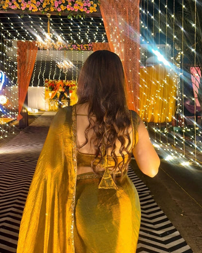 Golden Color Beautiful Partywear Saree