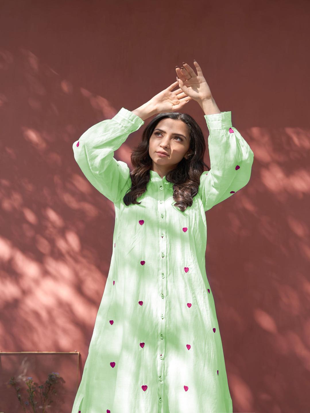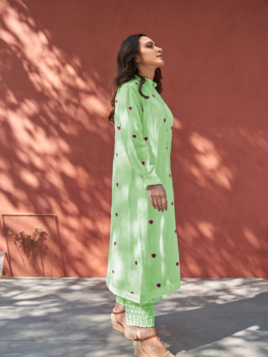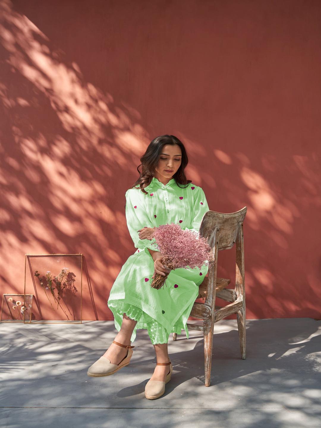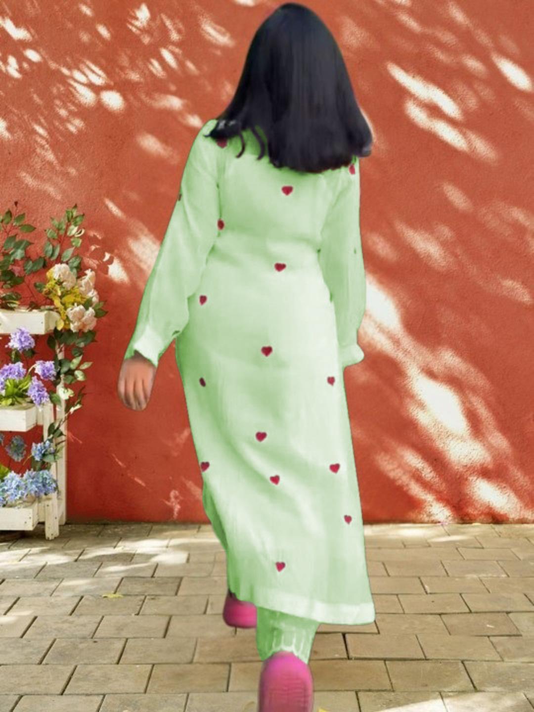 Green Color Beautiful Cotton Wear Kurti Pent Set