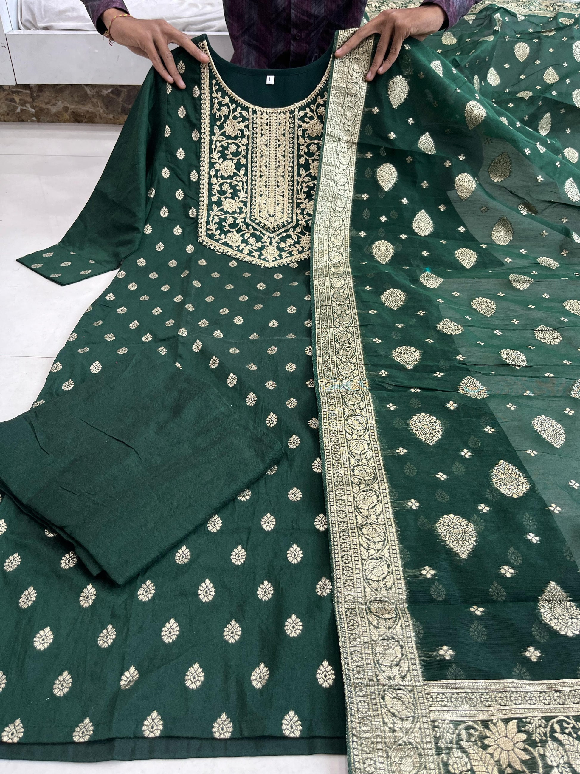 Green Color Beautiful Jaquard Fabric Suit for summer wear