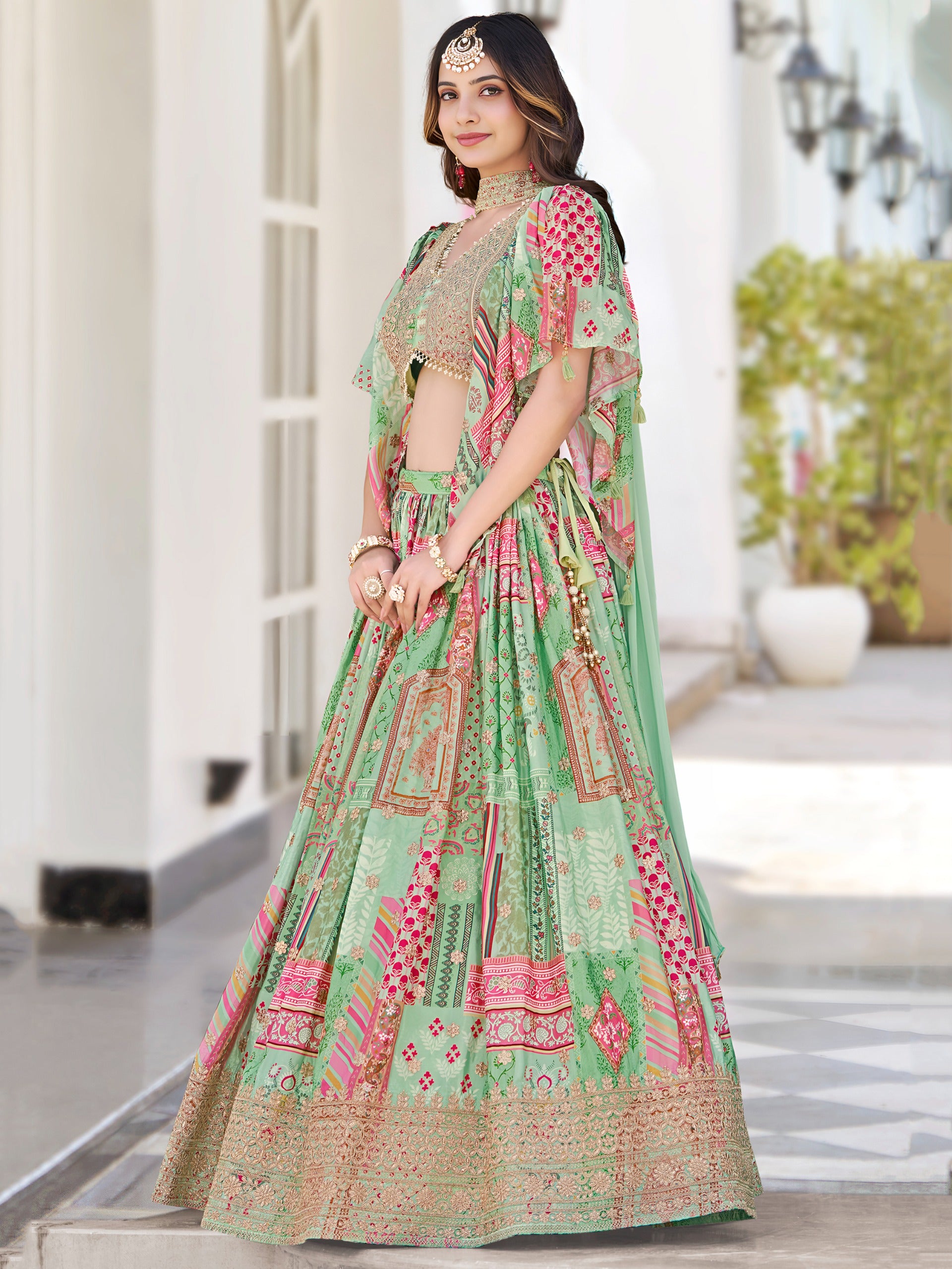 Green Color Beautiful Lehenga Choli in Chinon Silk Fabric