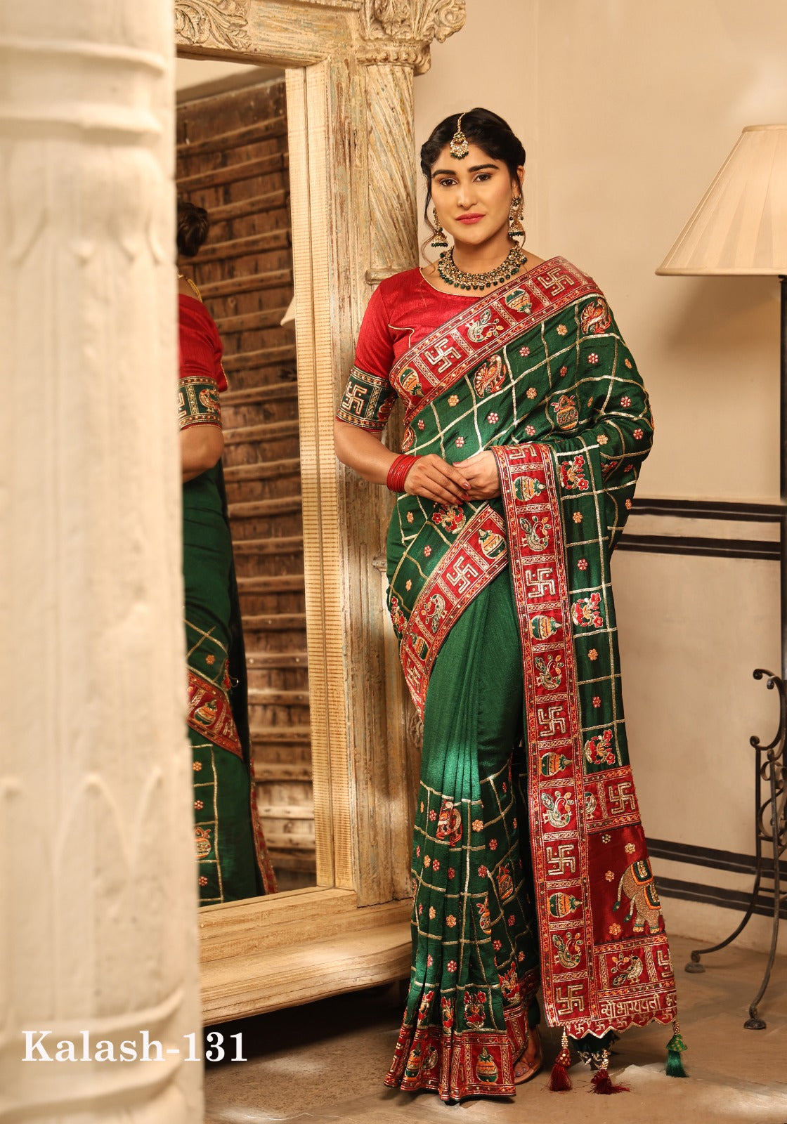 Green Red Color Panetar Patola Saubhagyavati Bhava Kalash Wedding & Special Occasion Saree