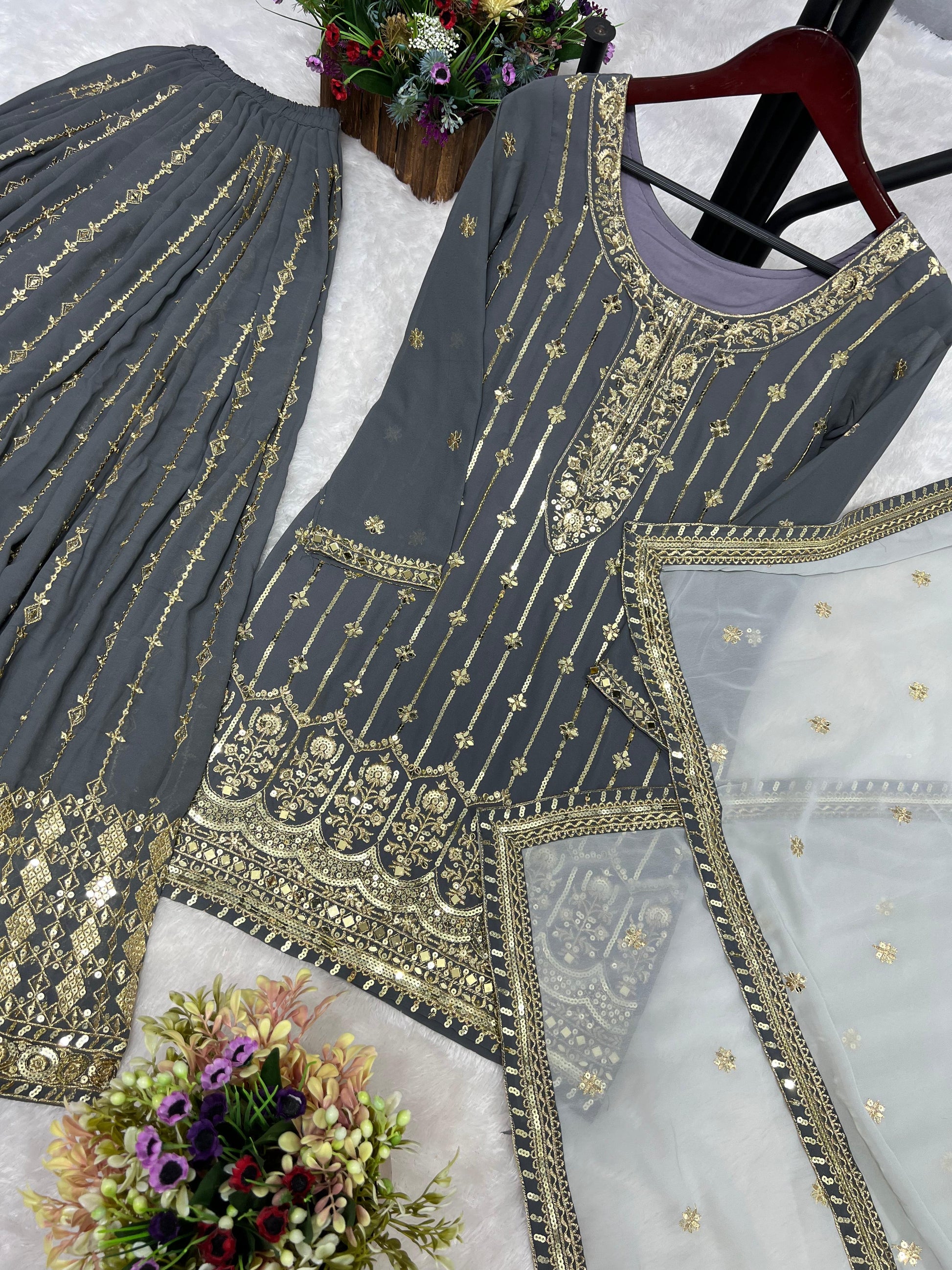 Grey Color Designer Pakistani Suit For Upcoming Festival