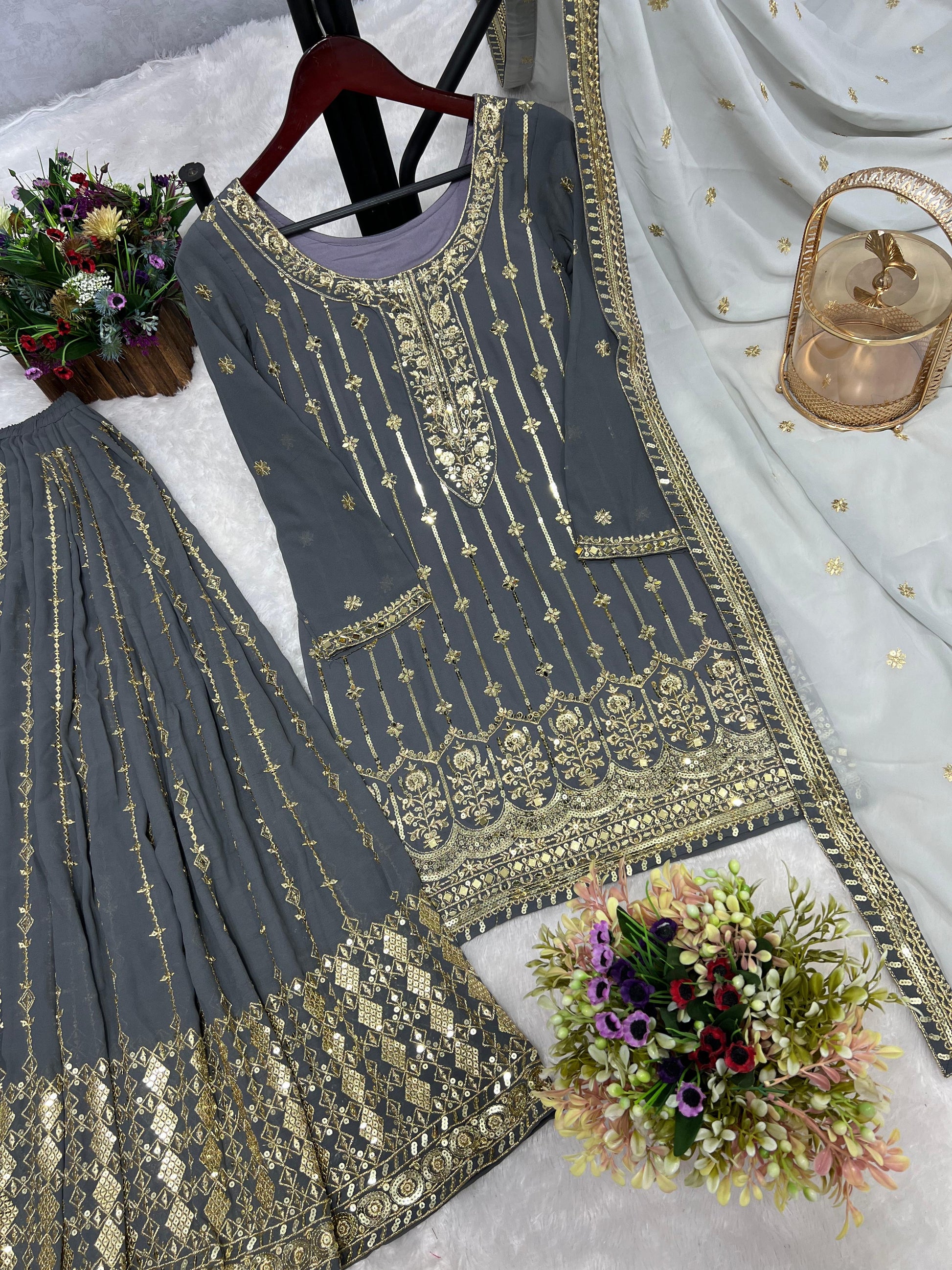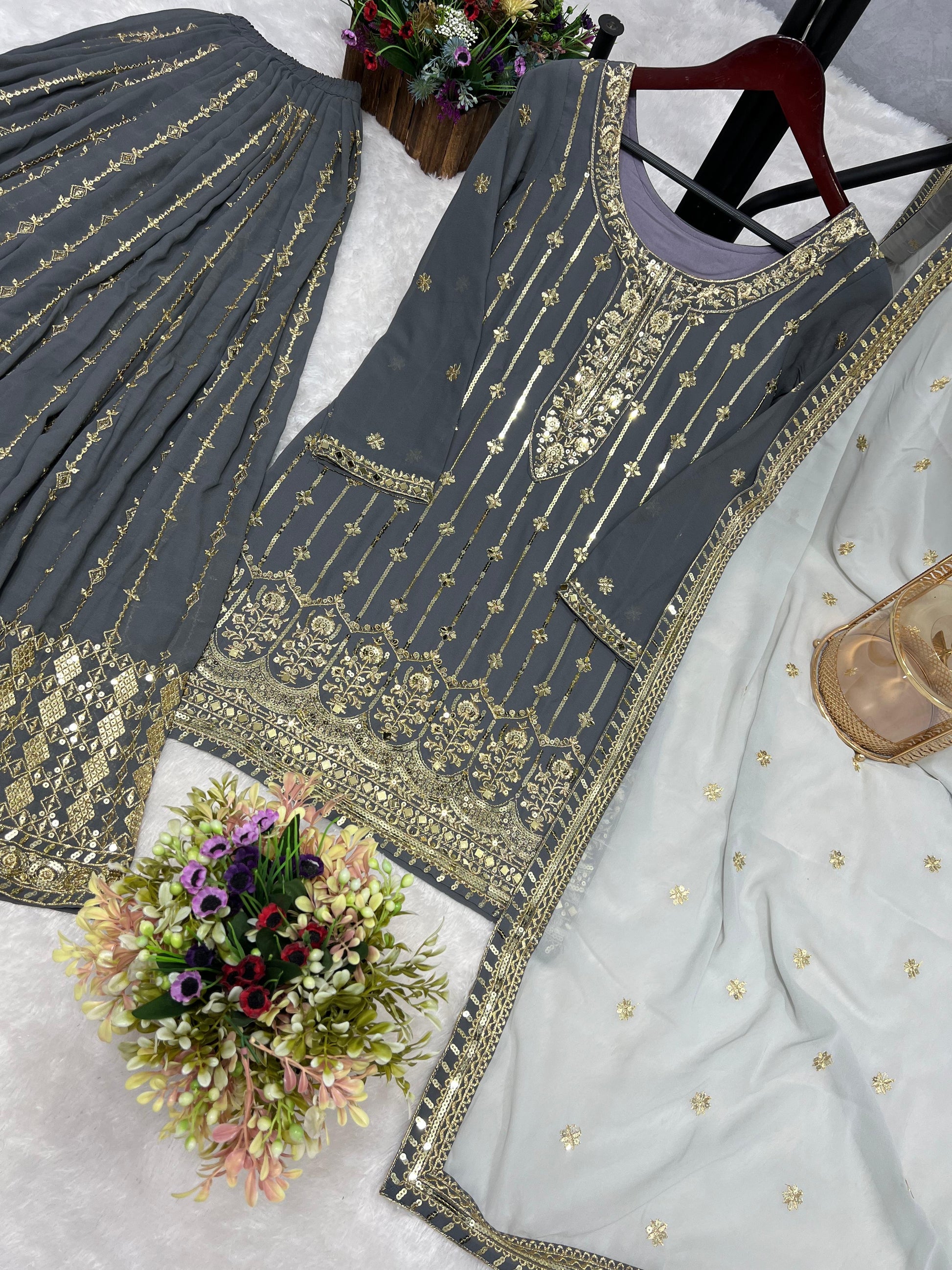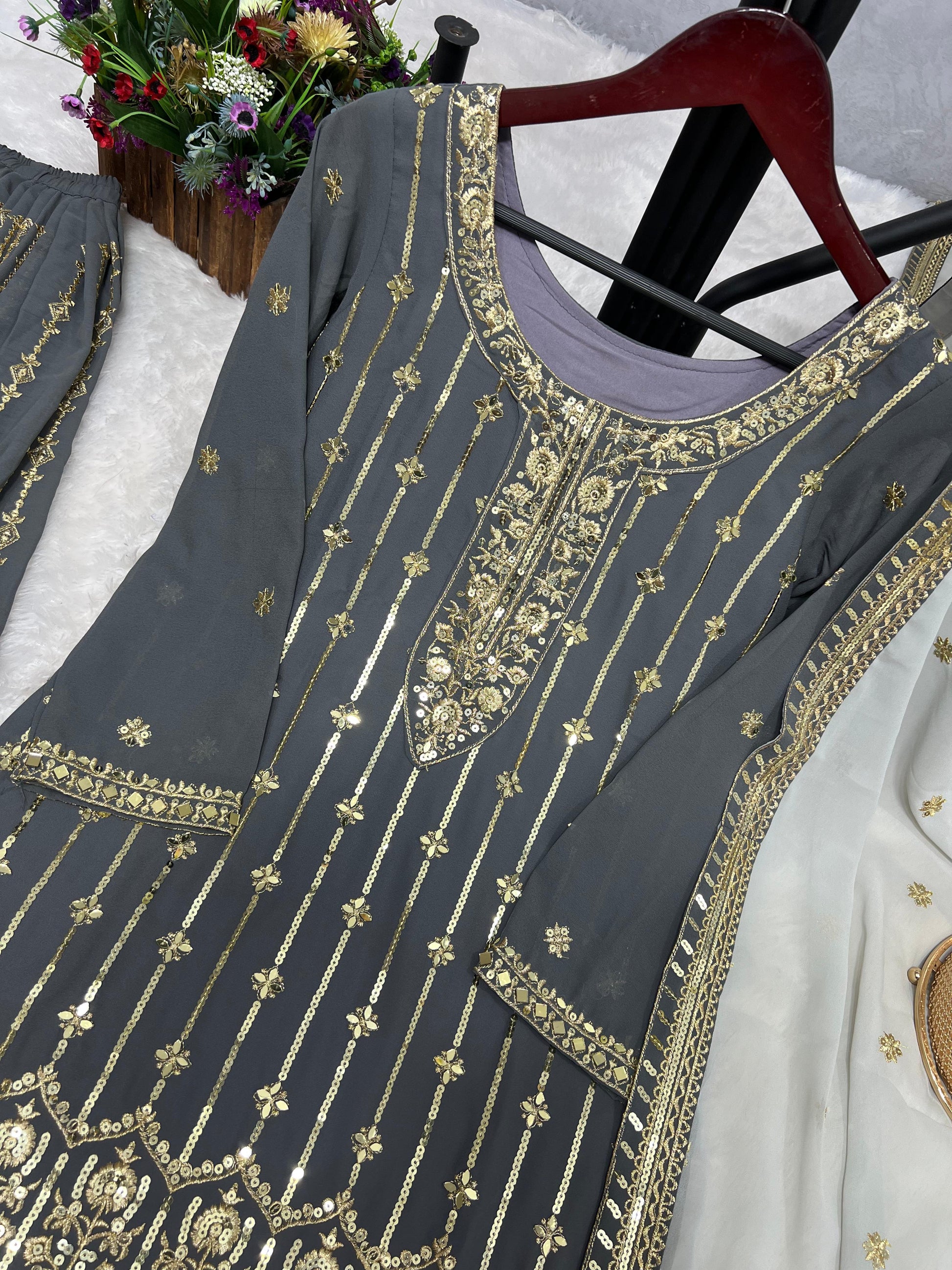 ➡️ Work :- Beutyful Embroidery And Sequence Work.