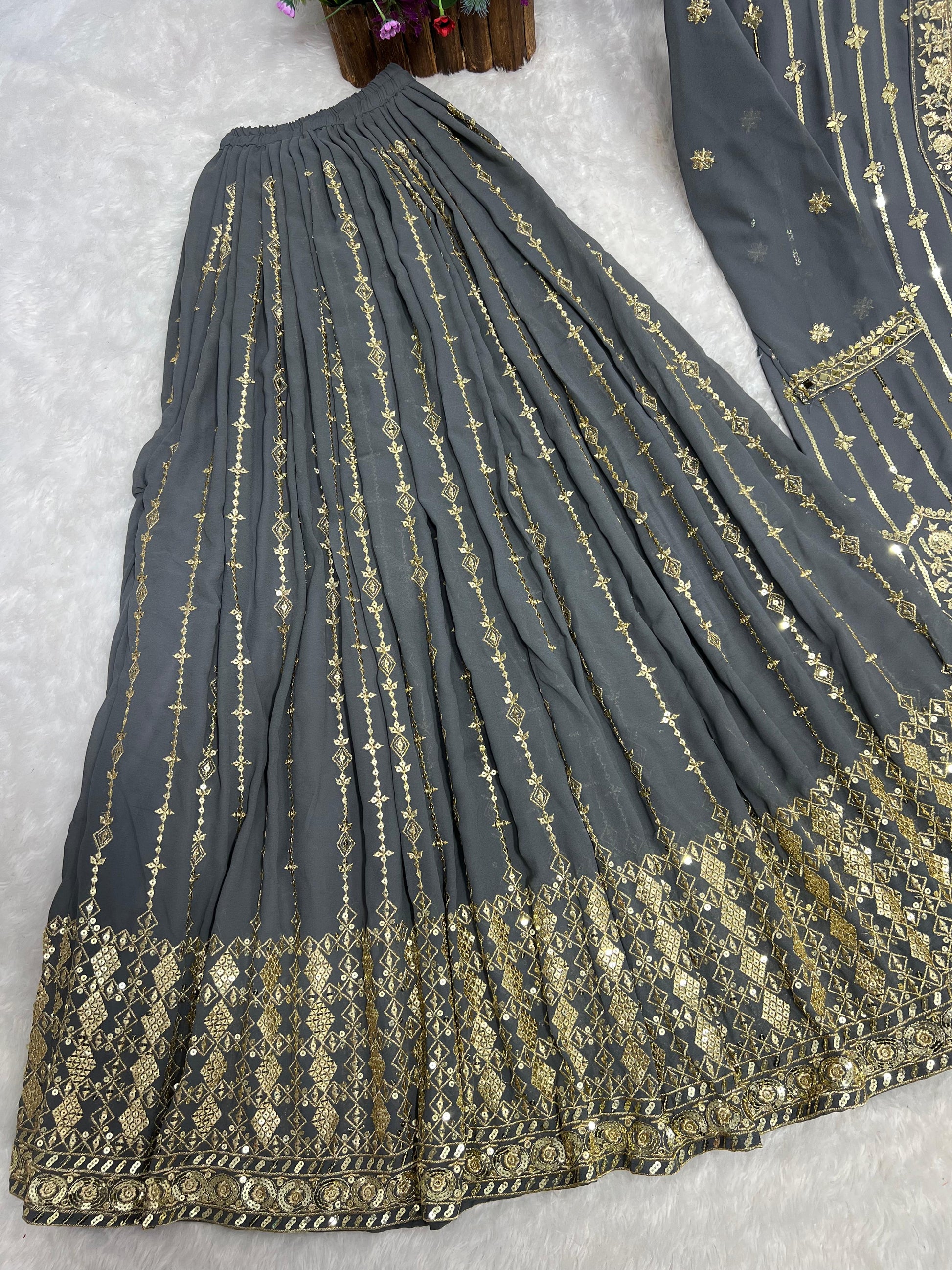 ➡️Work :- Attractive Embroidery And Sequence Work With Real Mirror Hand Work(Work Only Front Side).